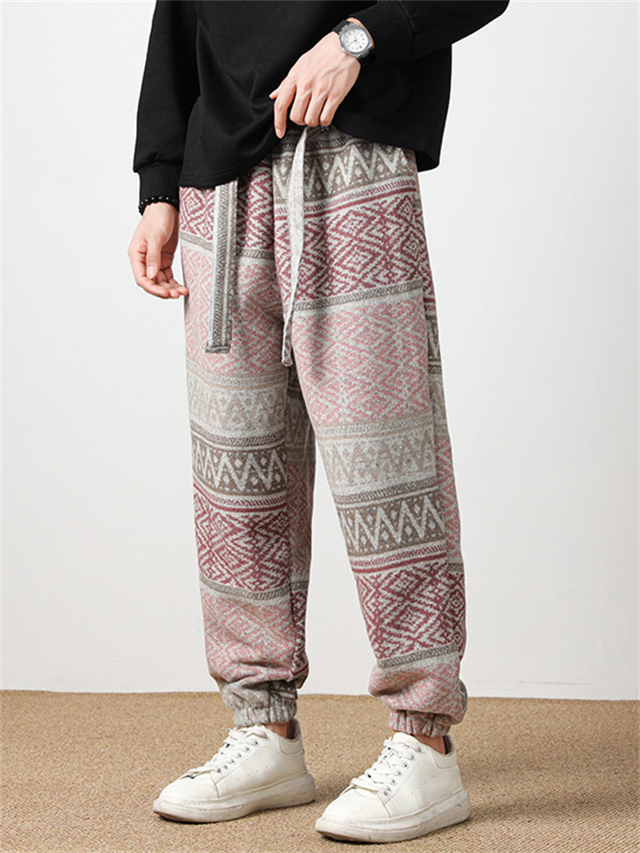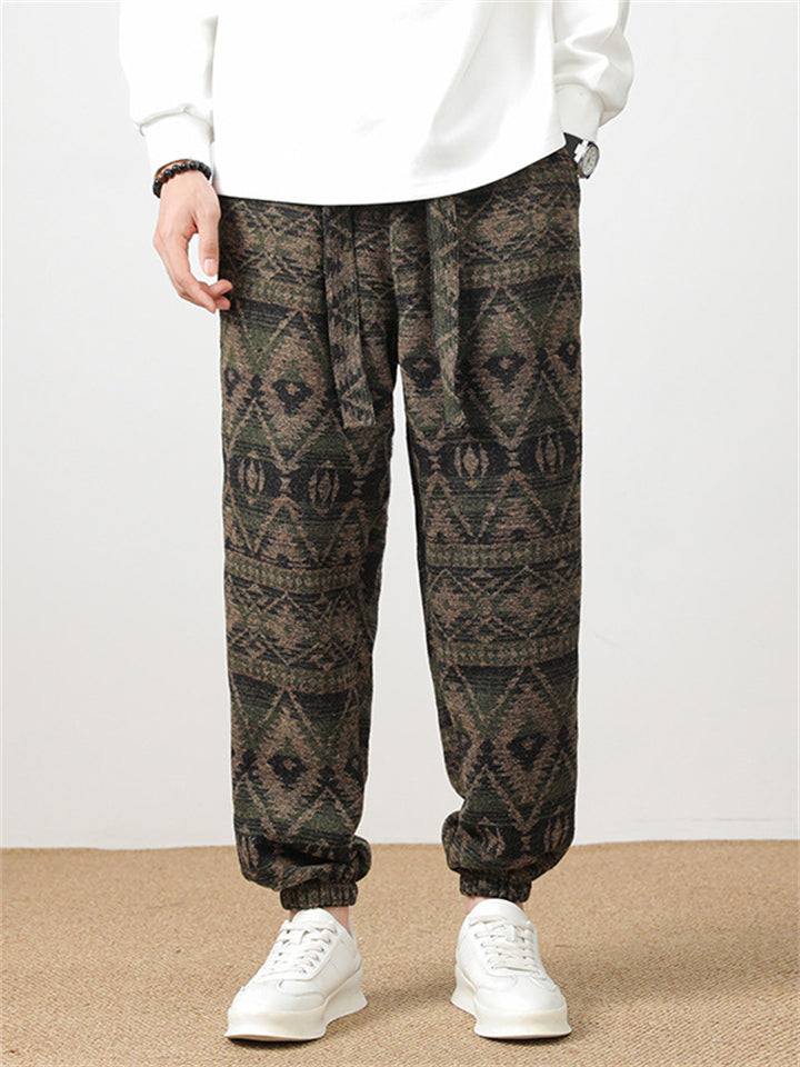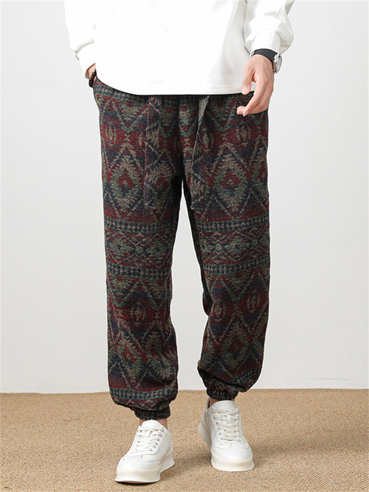 Men's Cozy Ethnic Style Jacquard Ankle-tied Pants