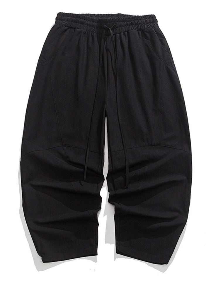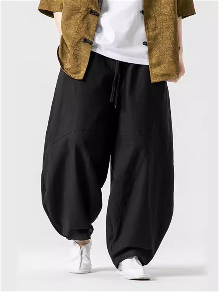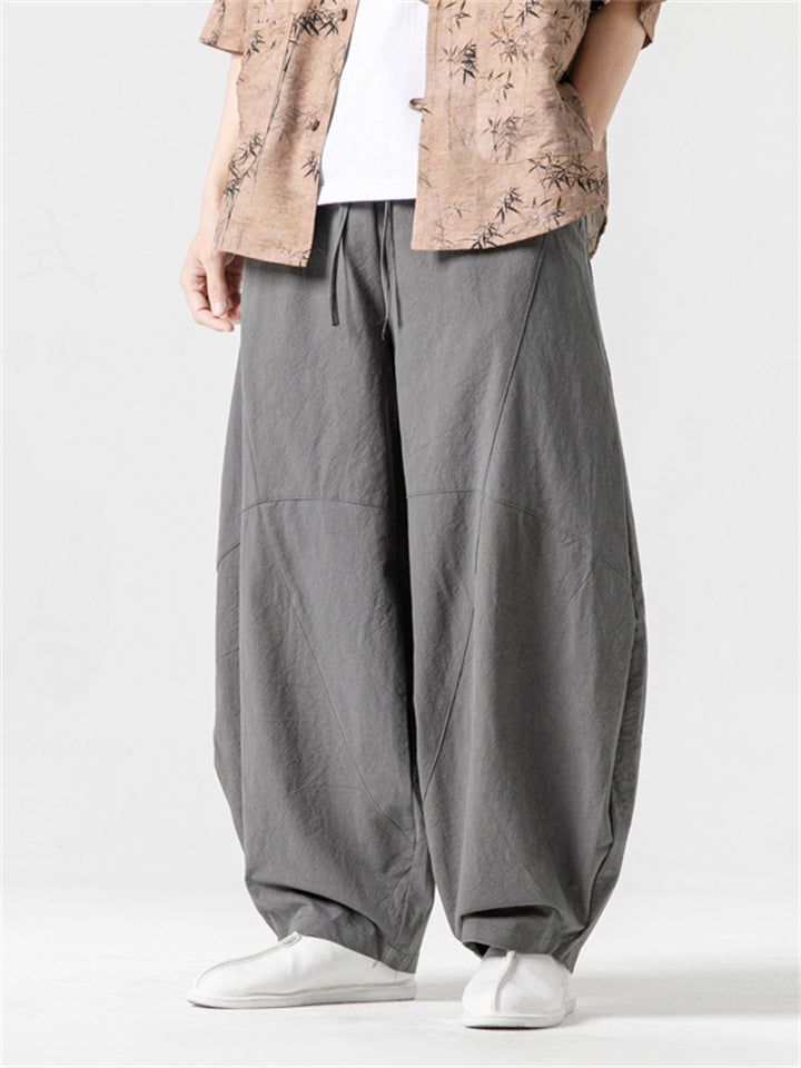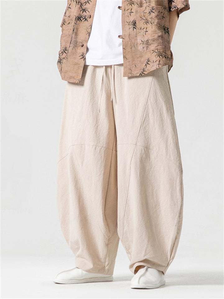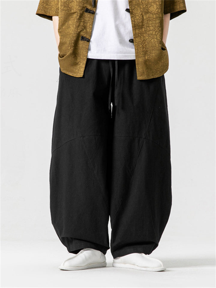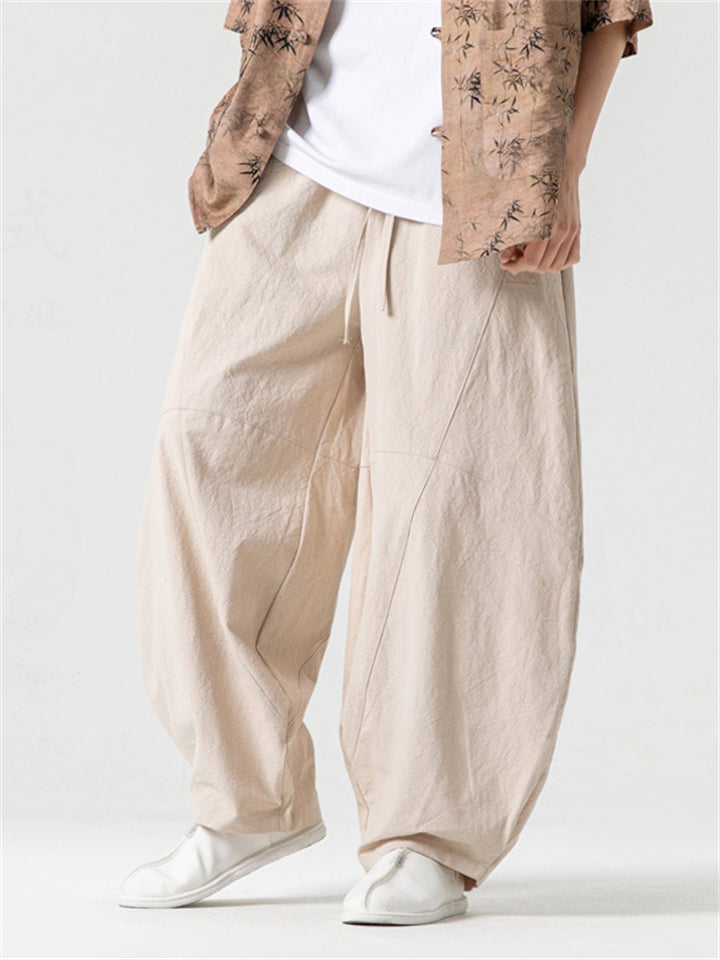 Vintage Japanese Street Style Drawstring Linen Pants for Men