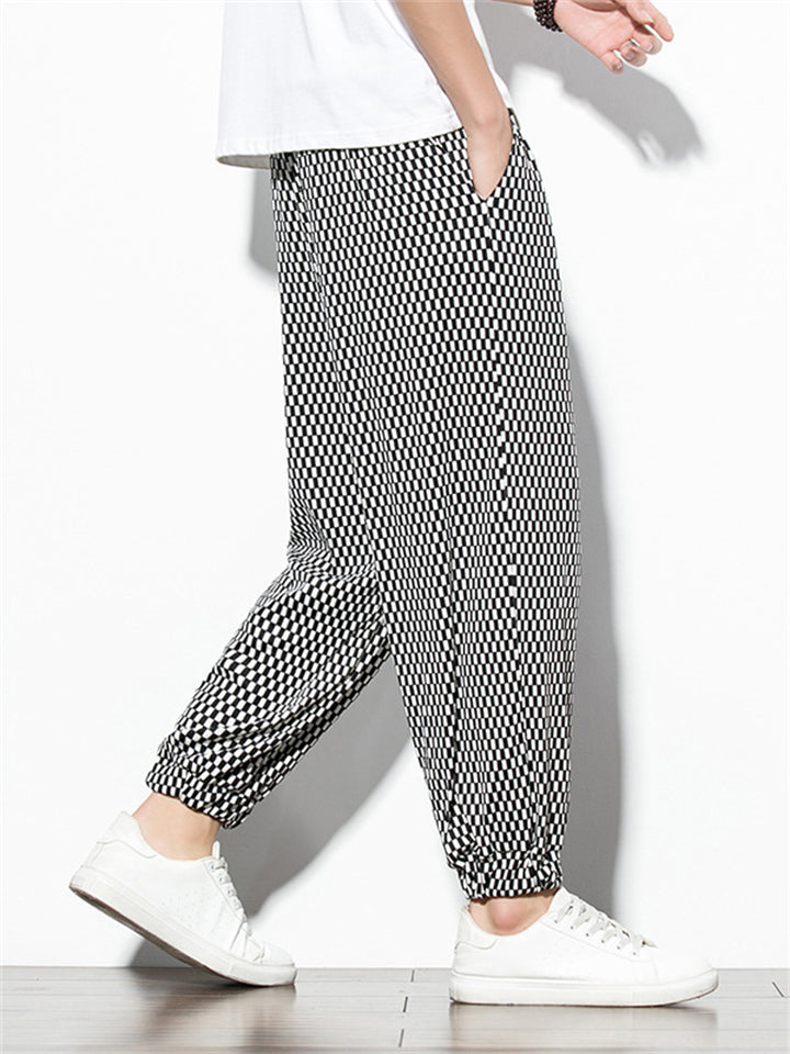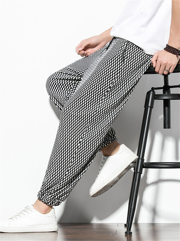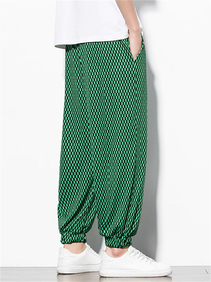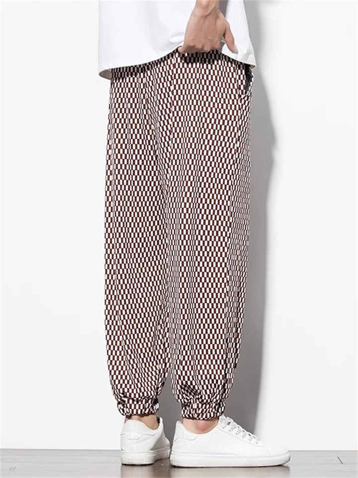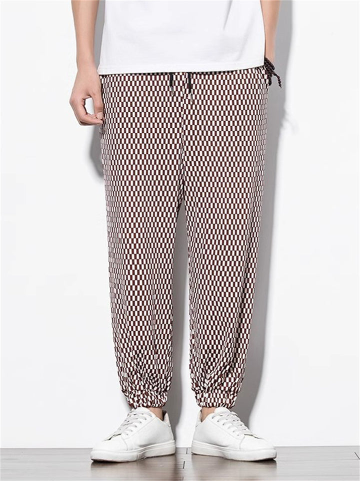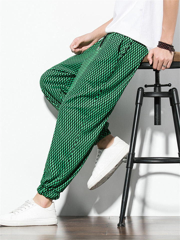 Men's Retro Summer Striped Drawstring Bloomers Jogger Pants
