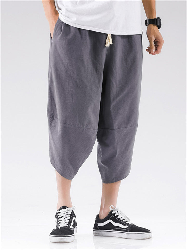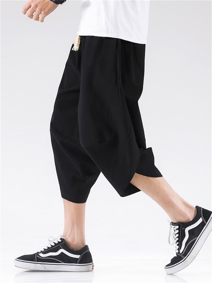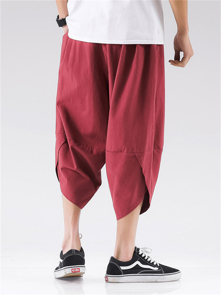 Men's Summer Ethnic Style Beach Bloomers Drop Crotch Capri Pants