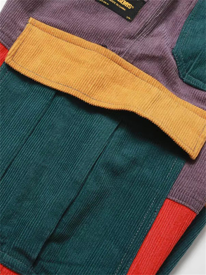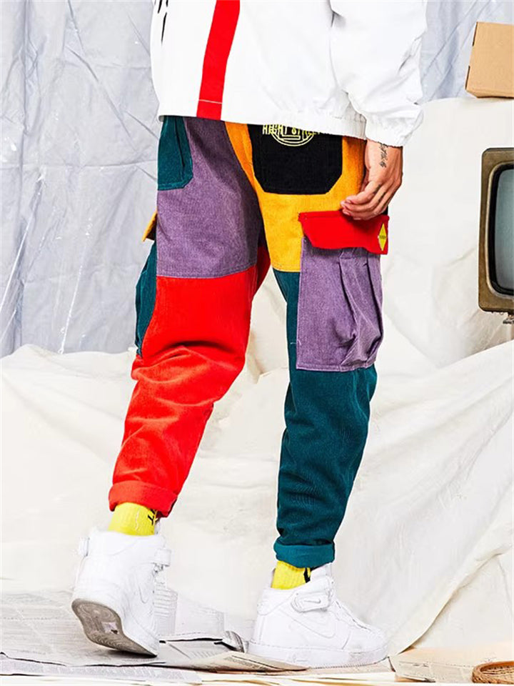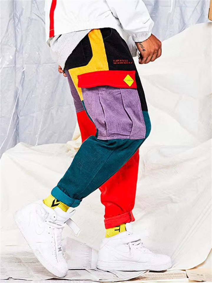 Men's Hip-Hop Color Block Patchwork Multi-Pocket Pants