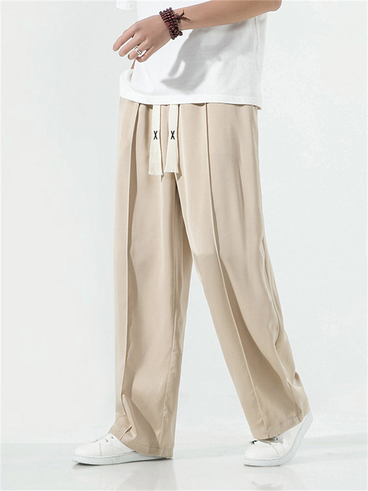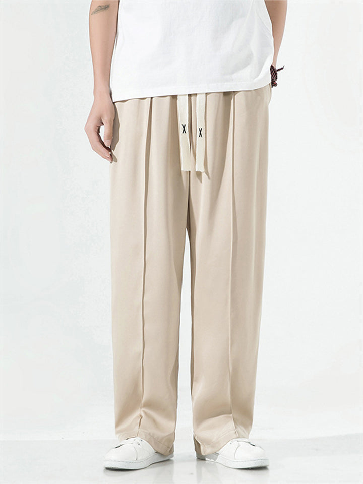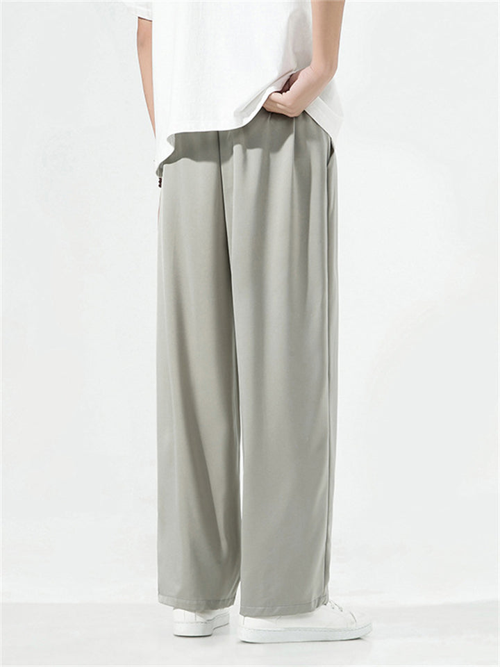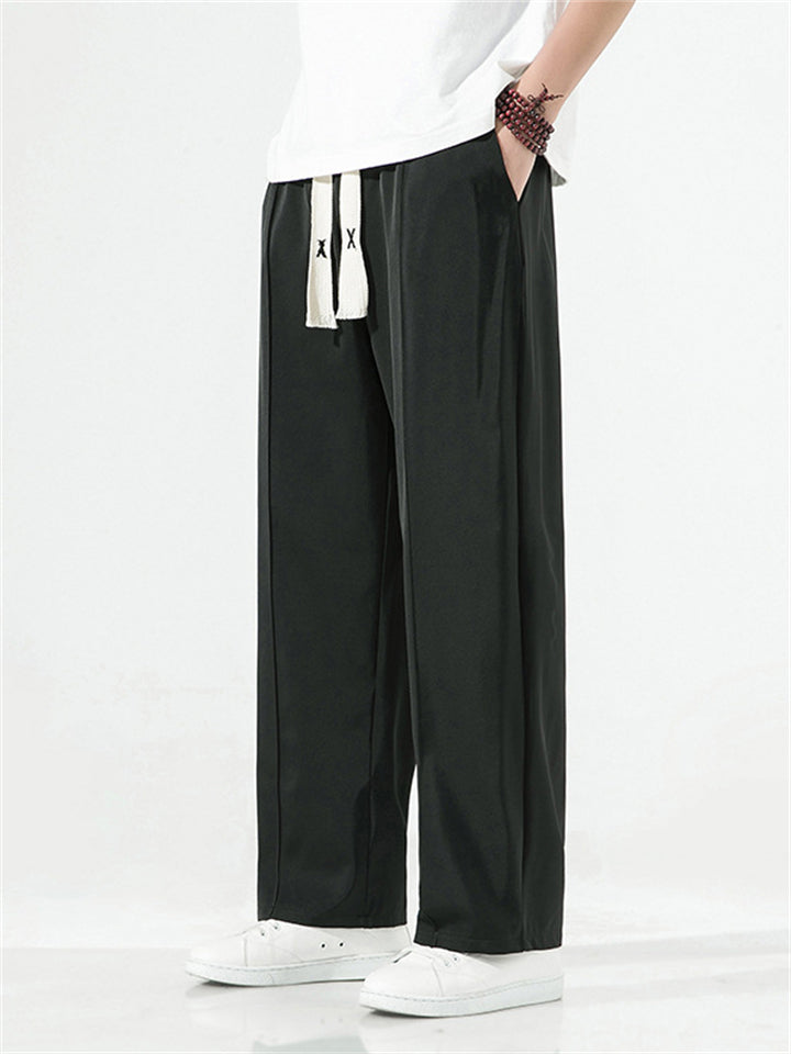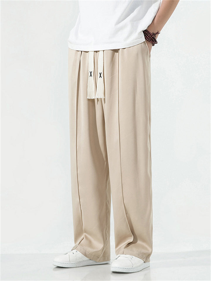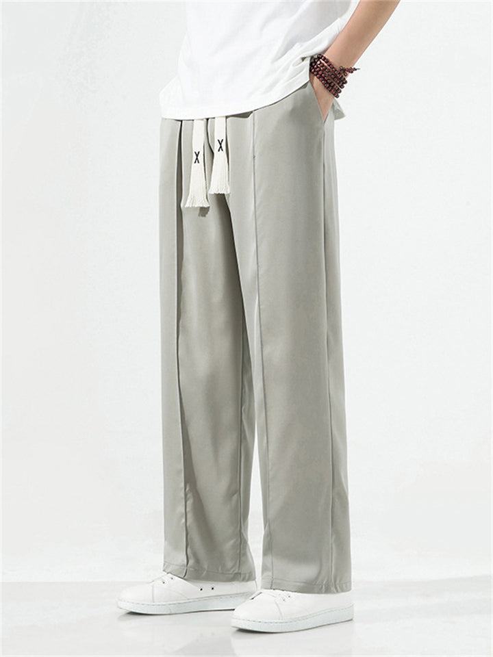 Men's Ice Silk Soft Smooth Loose Casual Trousers with Drawstring