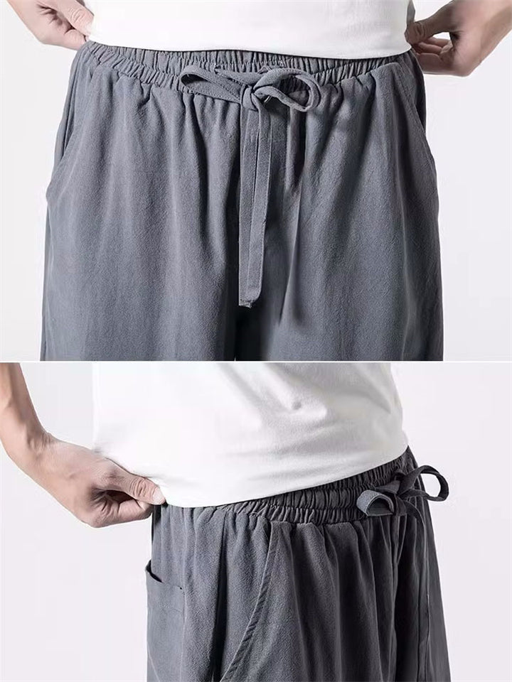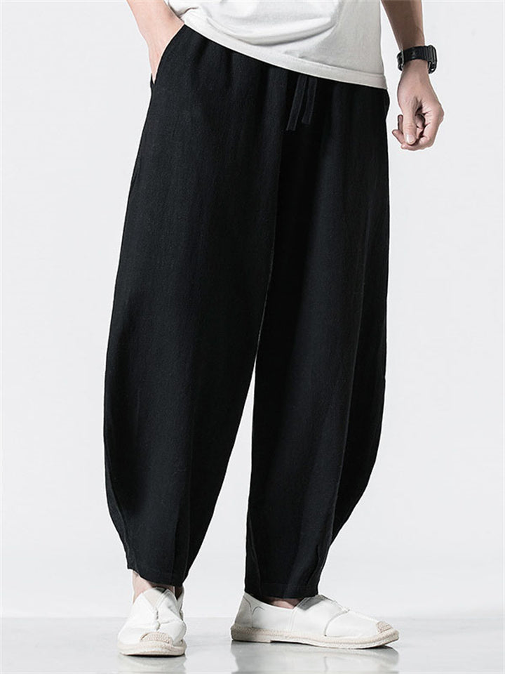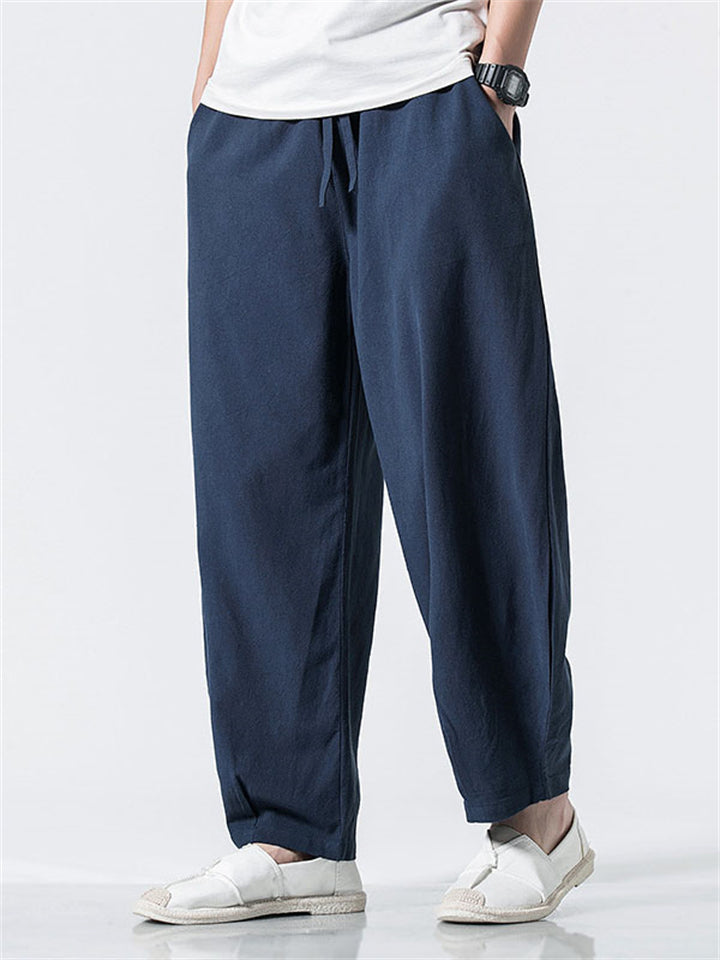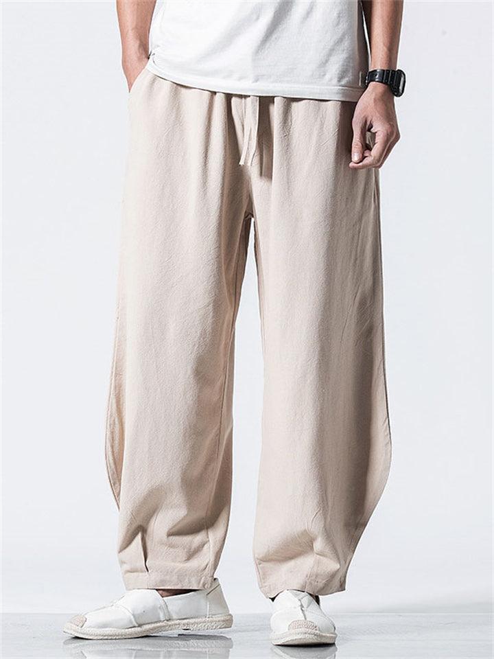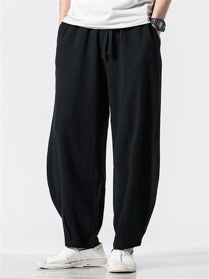 Vintage Japanese Street Style Drawstring Linen Pants for Men