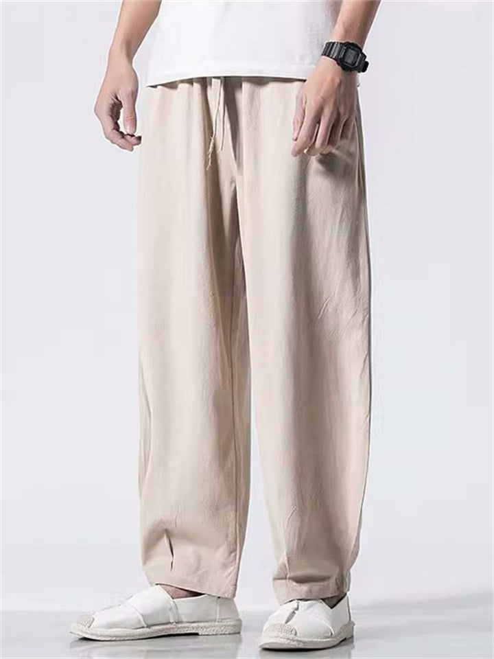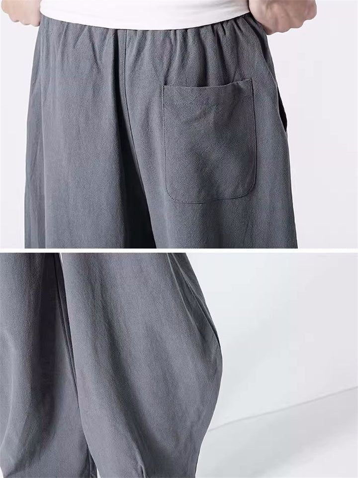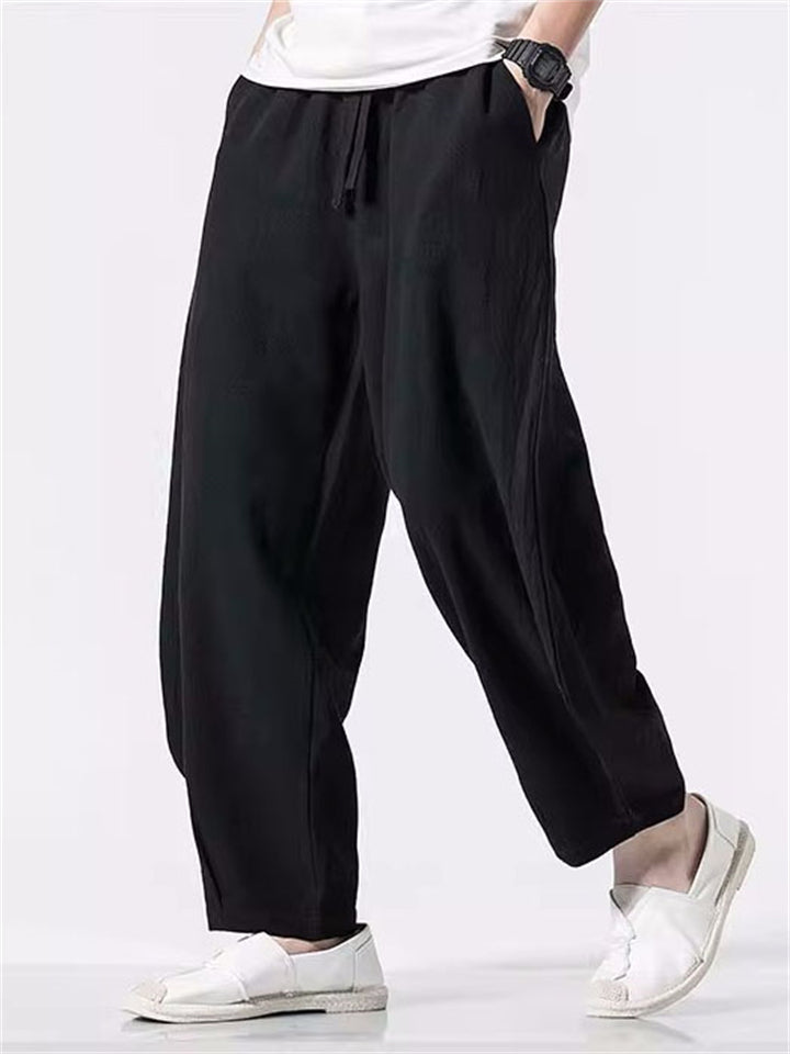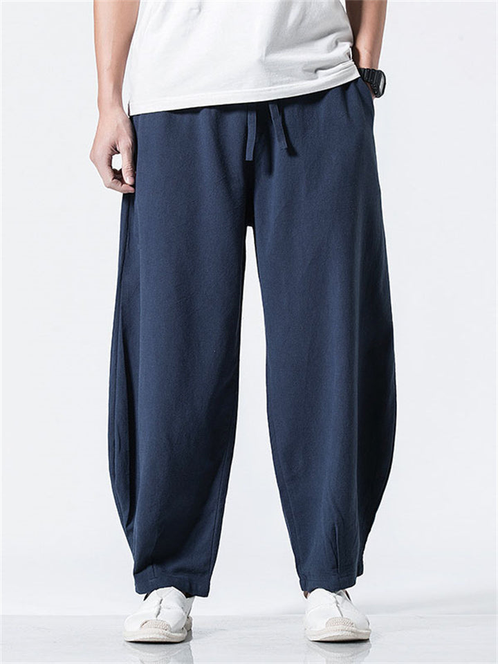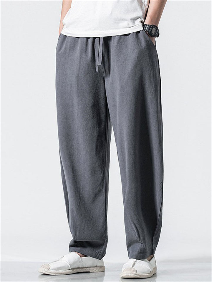 Men's Japanese Solid Color Loose Cotton Casual Pants