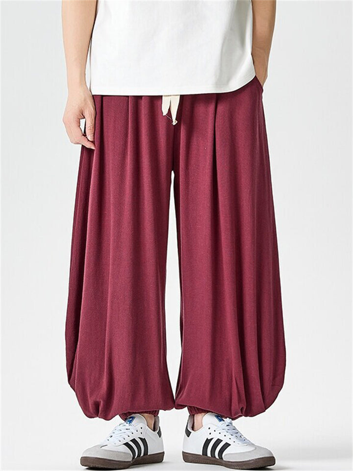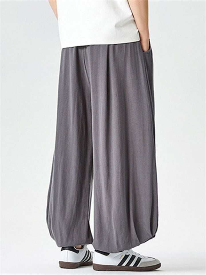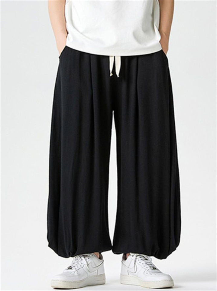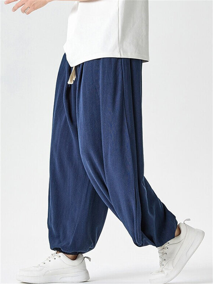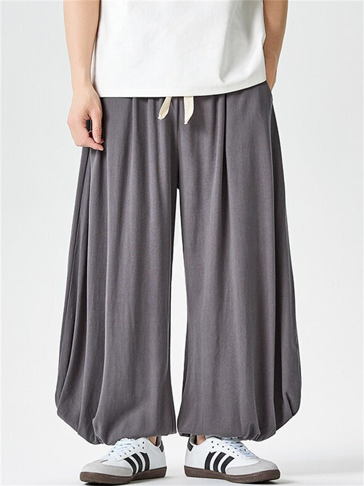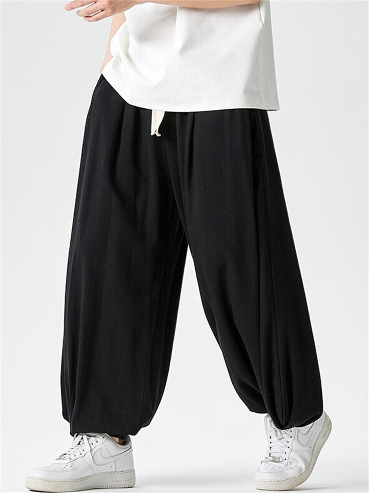Men's Japanese Style Cotton Linen Solid Color Loose Bloomers Pants