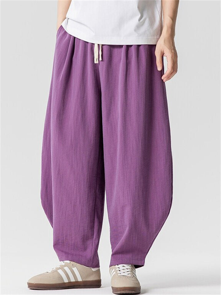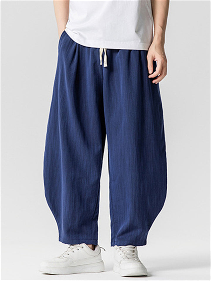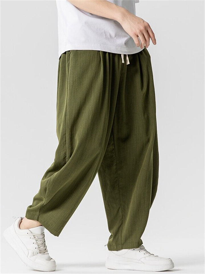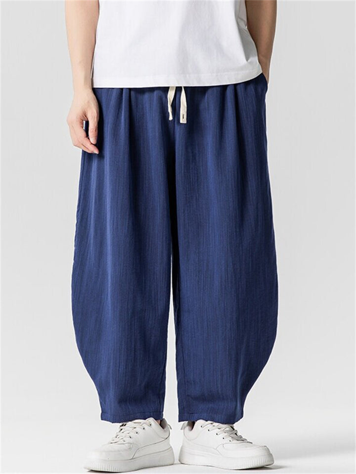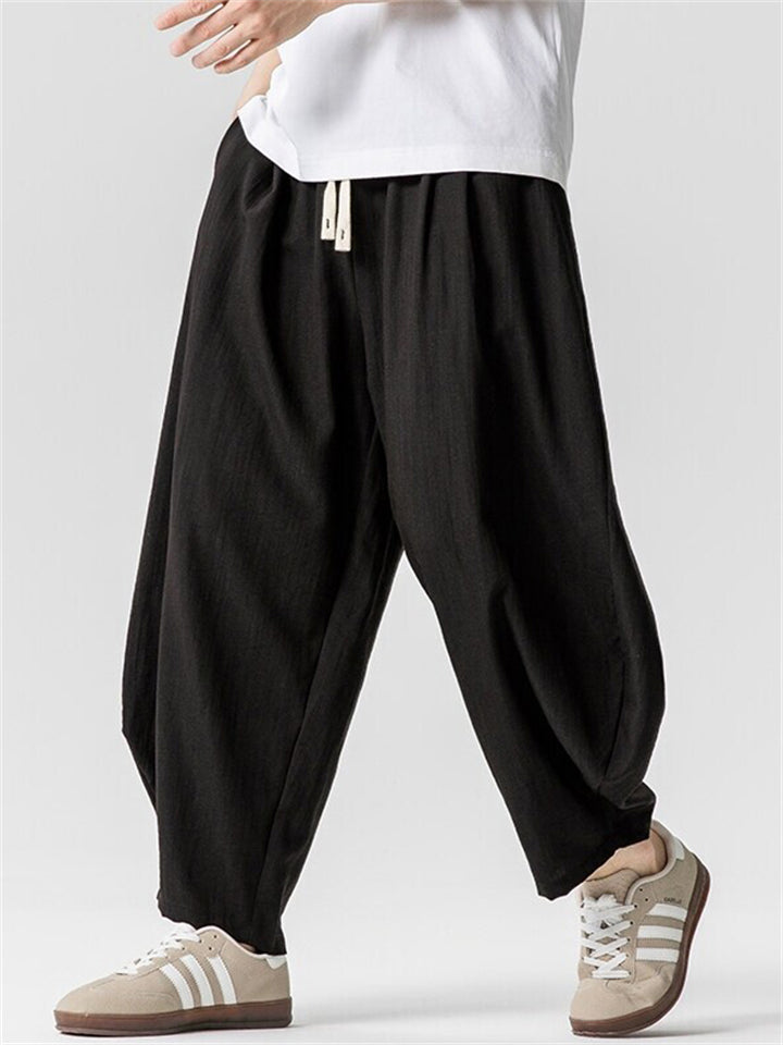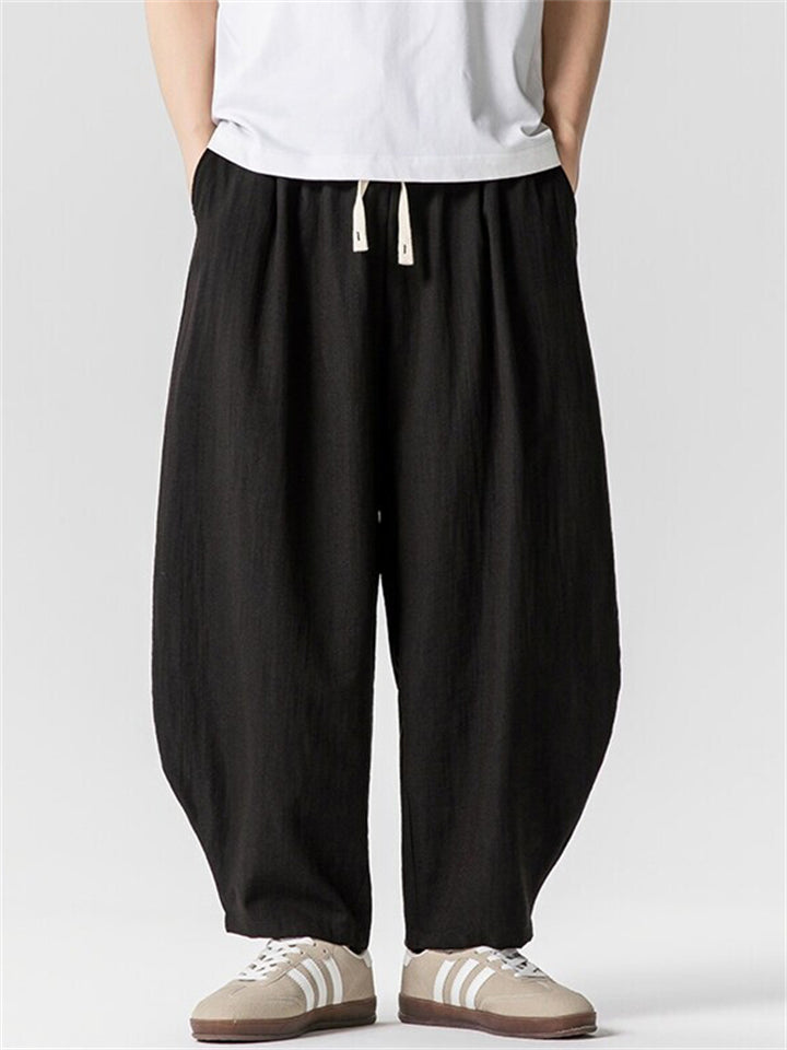 Vintage Japanese Street Style Drawstring Linen Pants for Men