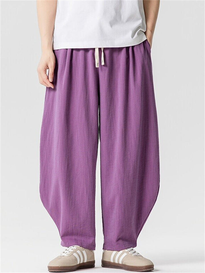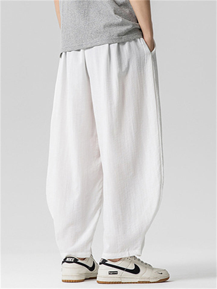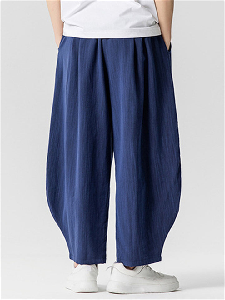Men's Japanese Style Summer Solid Color Harem Cropped Pants