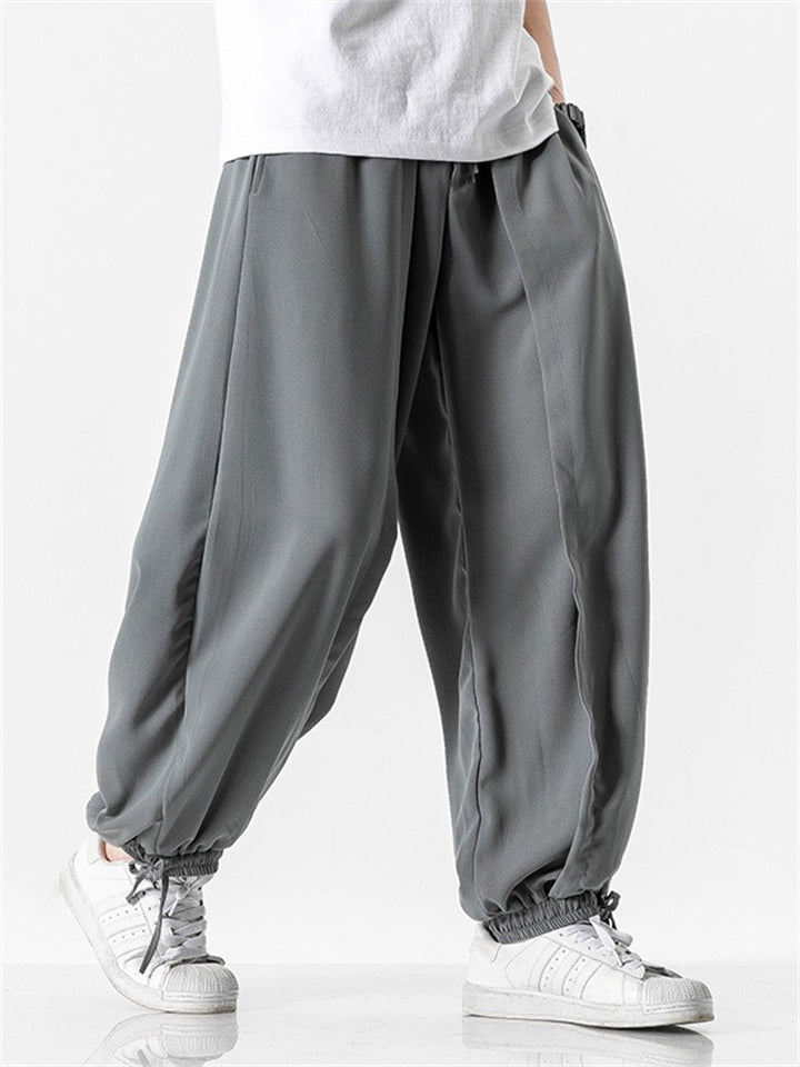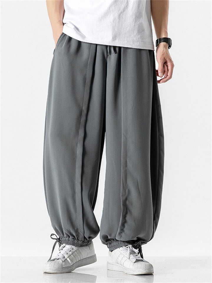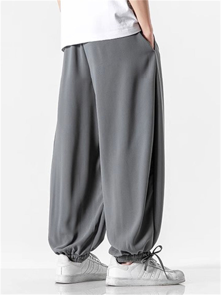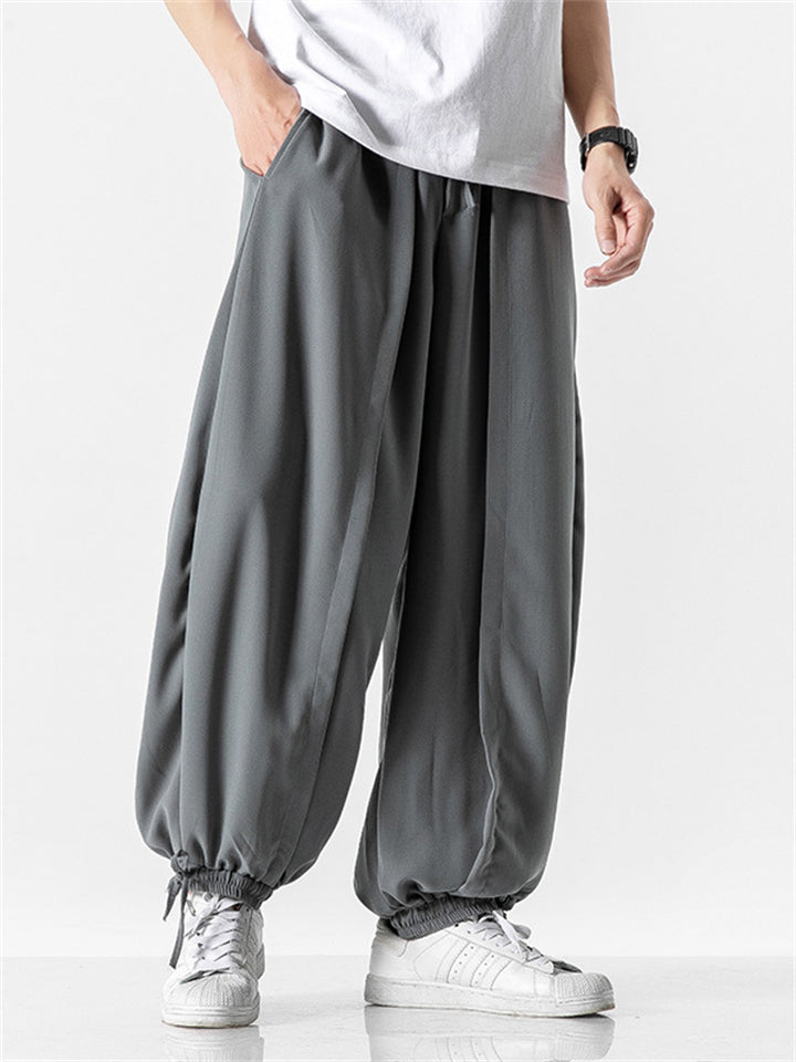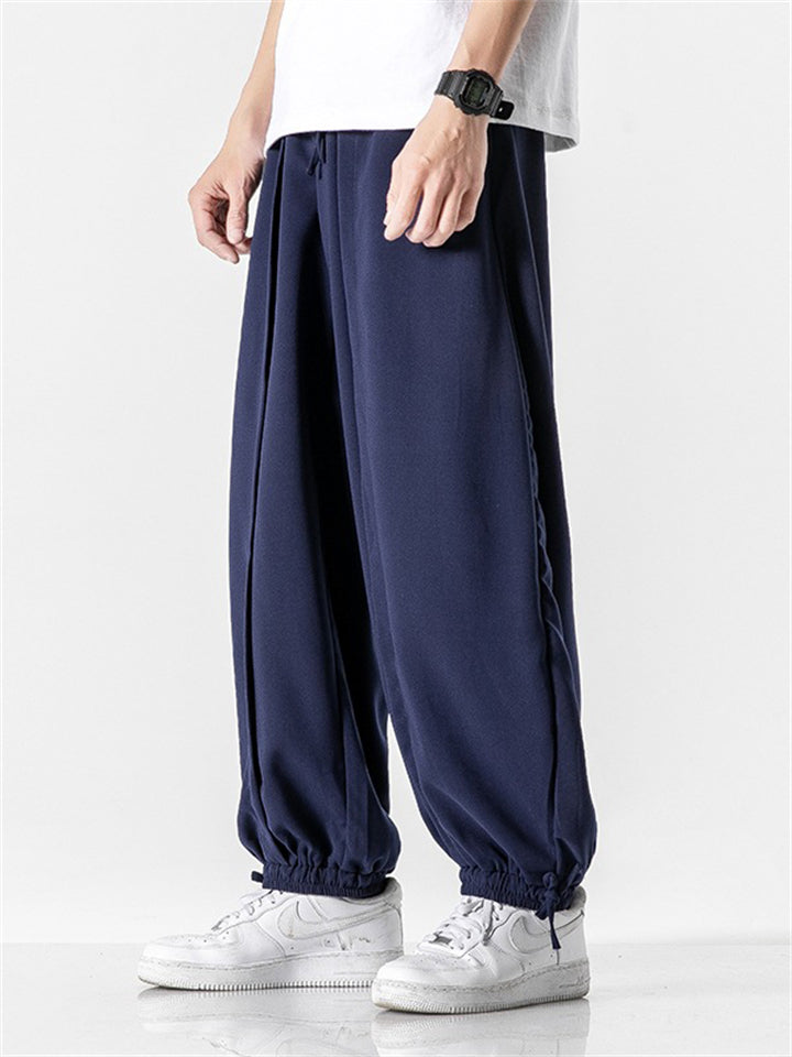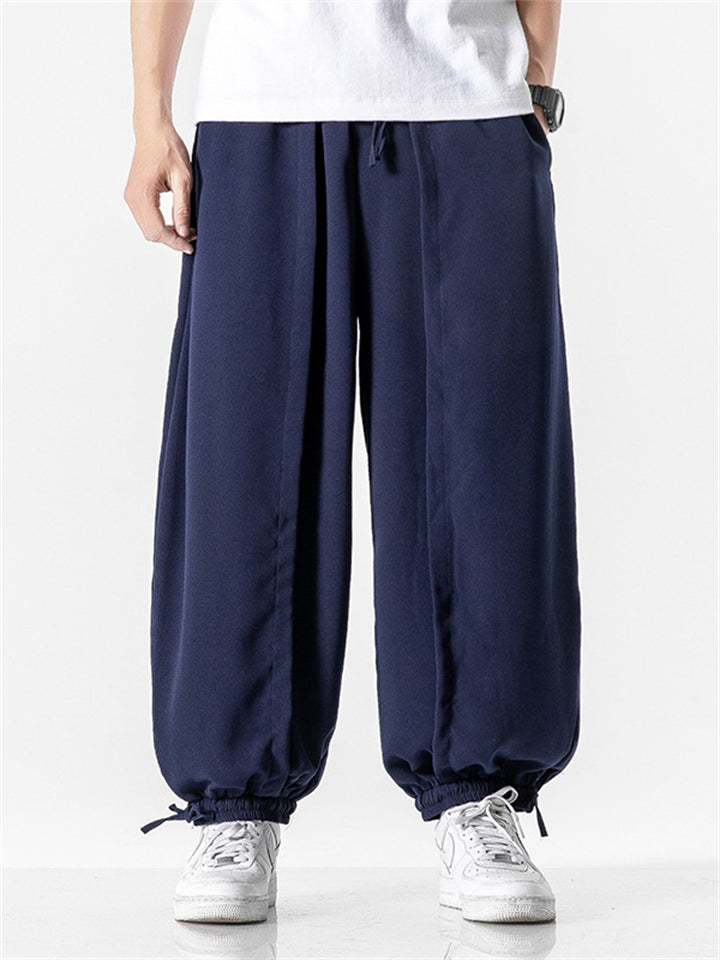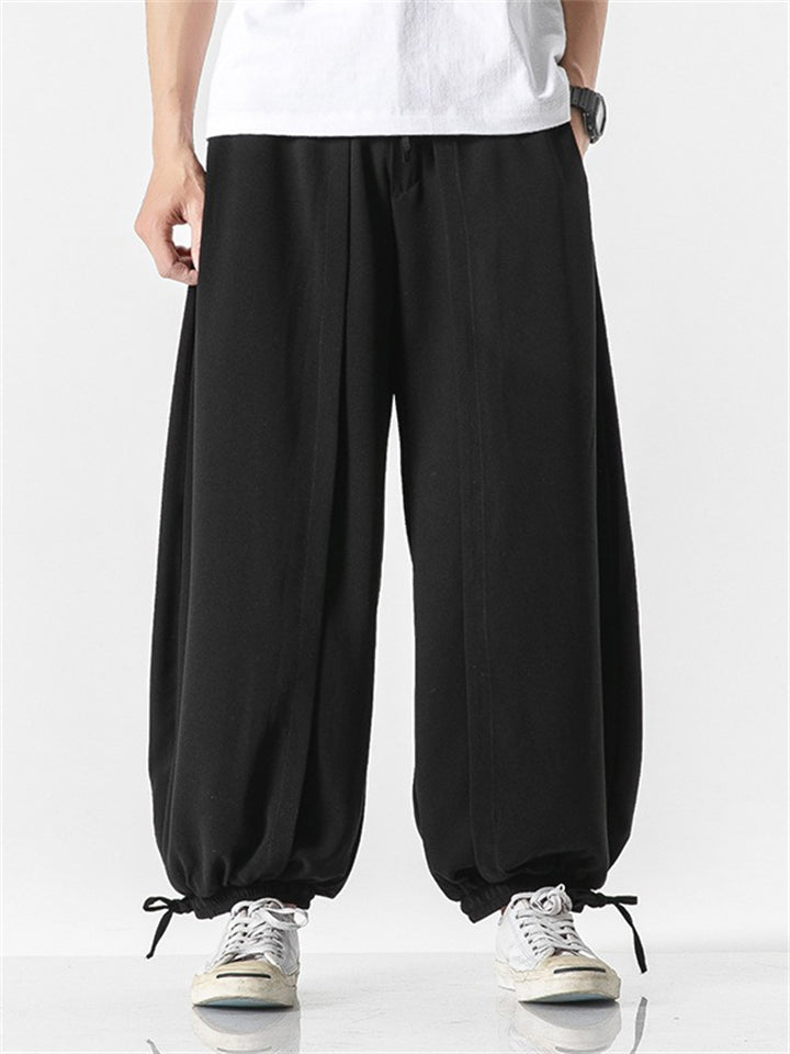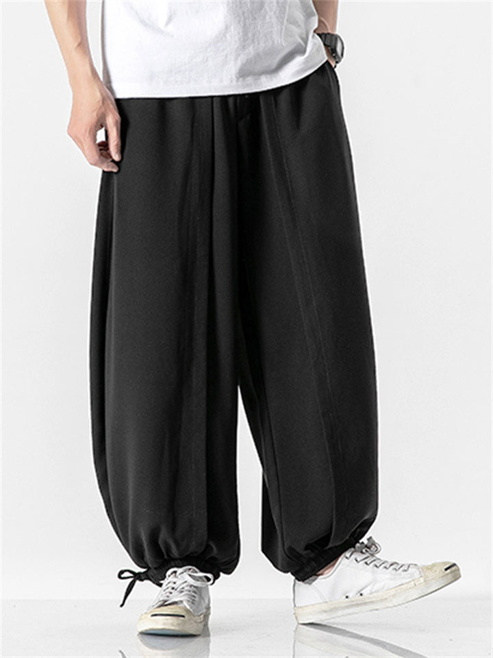 Men's Japanese Trendy Loose Solid Color Ankle-Tied Pants