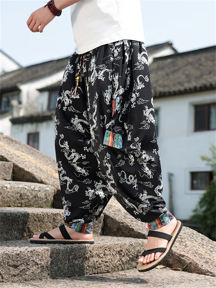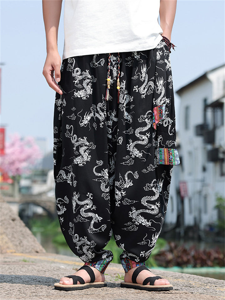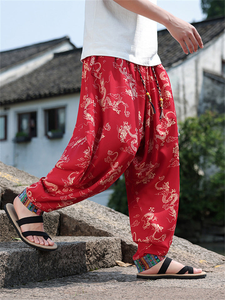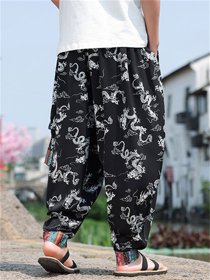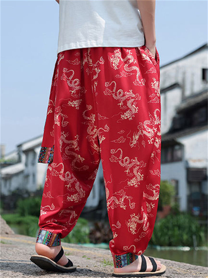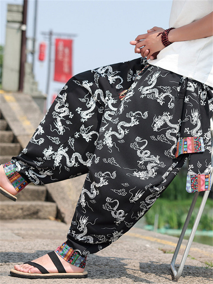Men's Loong Graphic Ethnic Style Ice Silk Pants