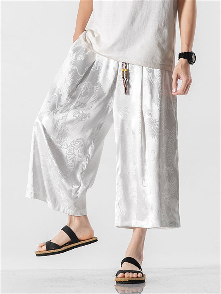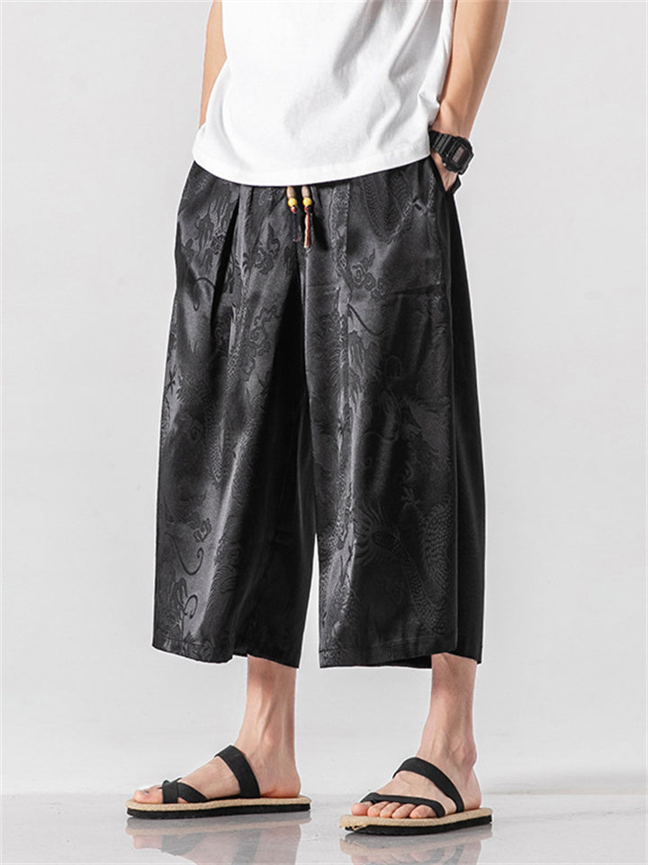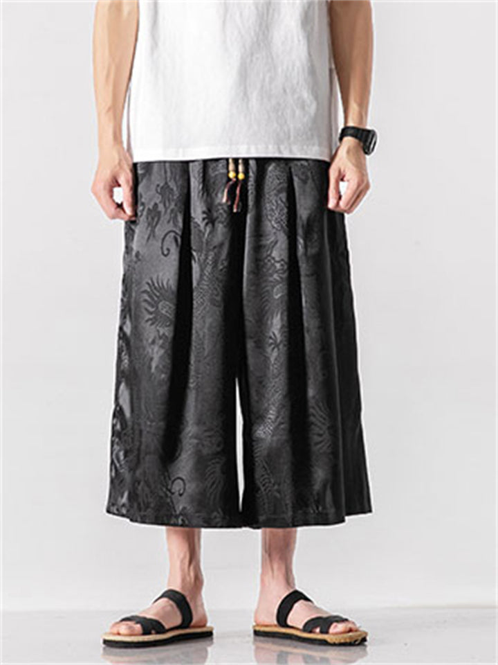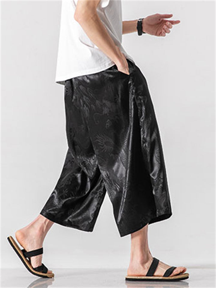 Men's Loose Chinese Style Dragon Shadow Cropped Pants