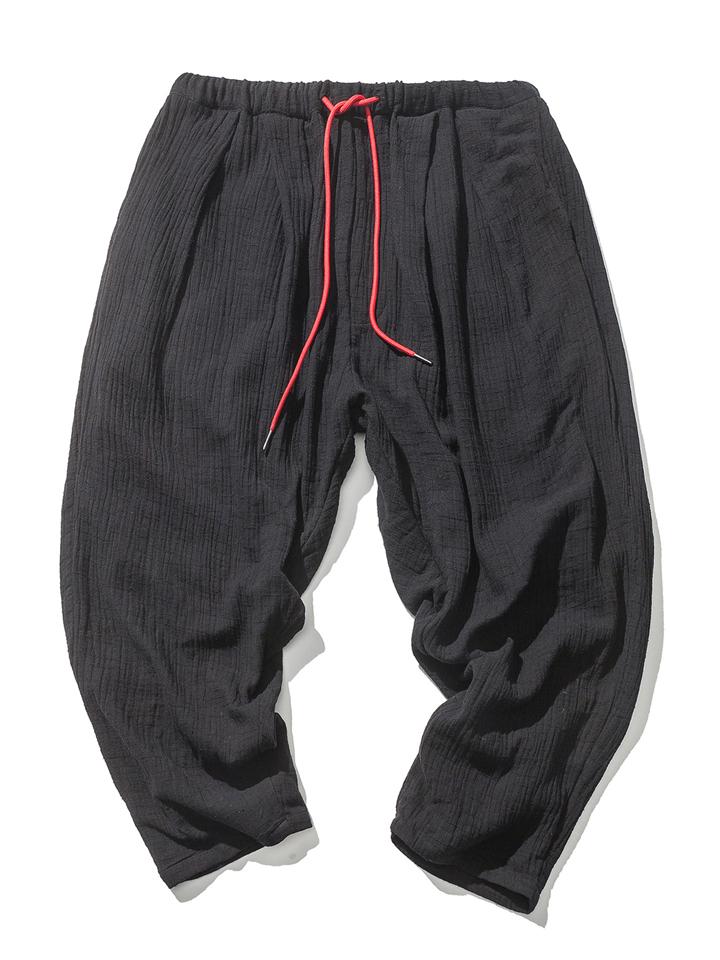 Vintage Japanese Street Style Drawstring Linen Pants for Men