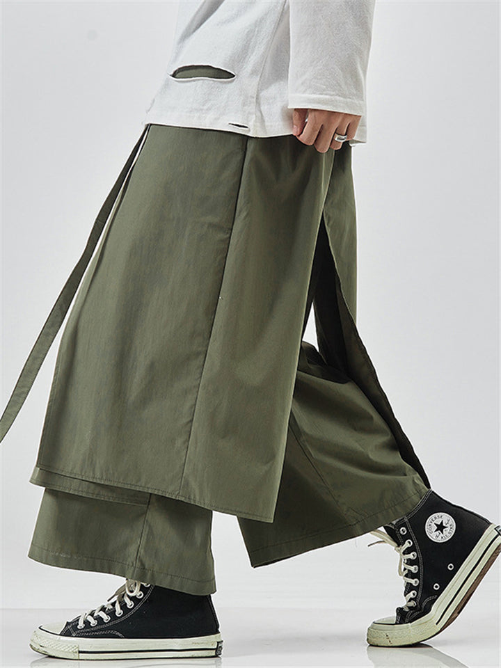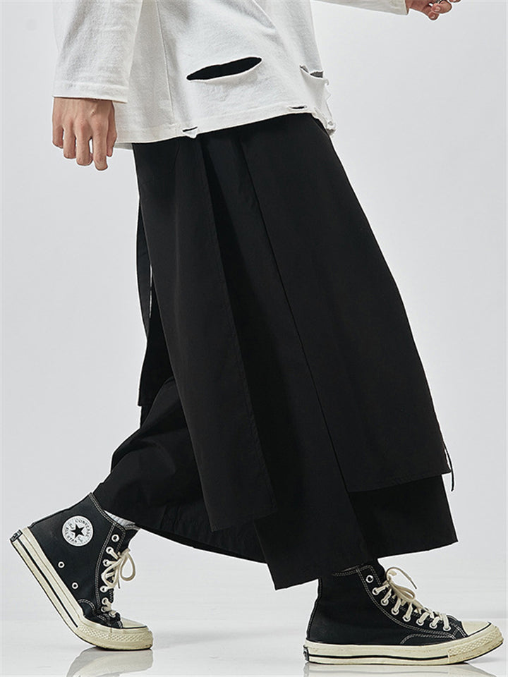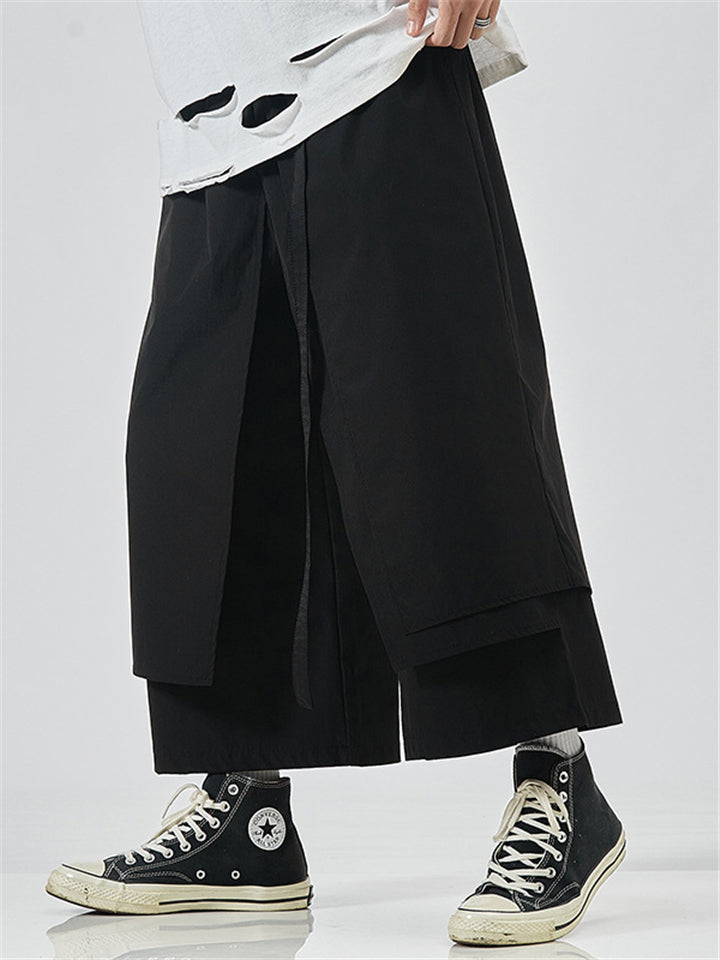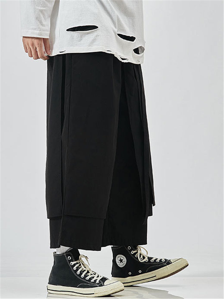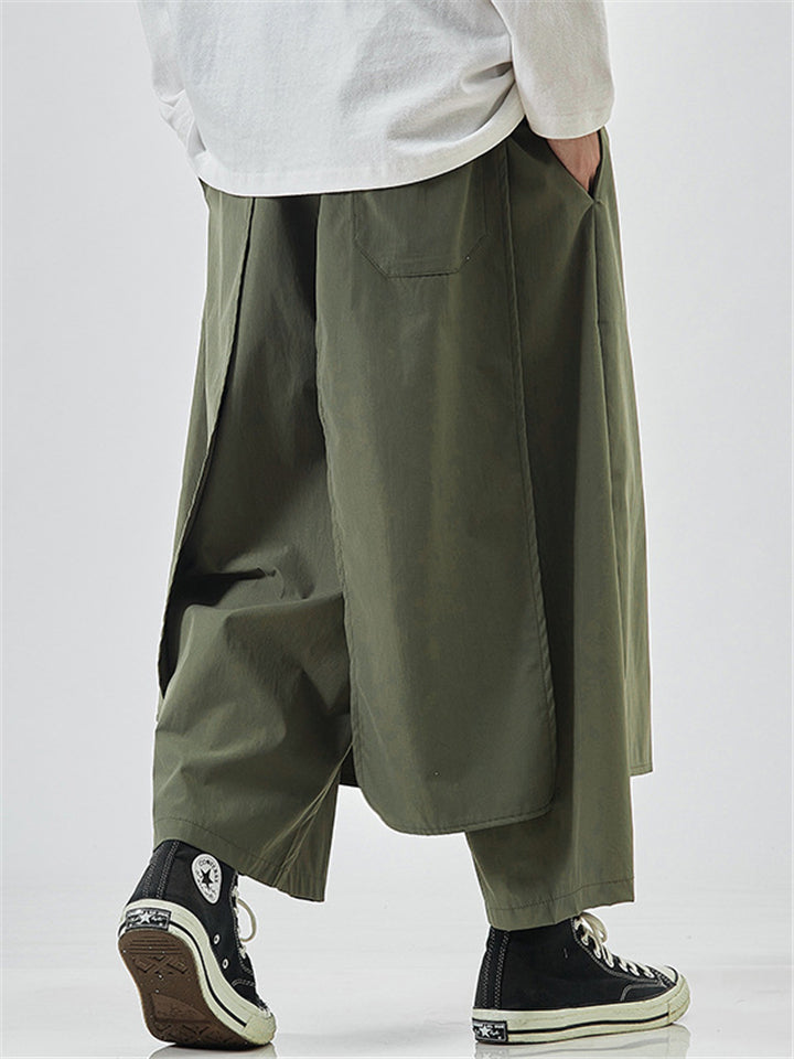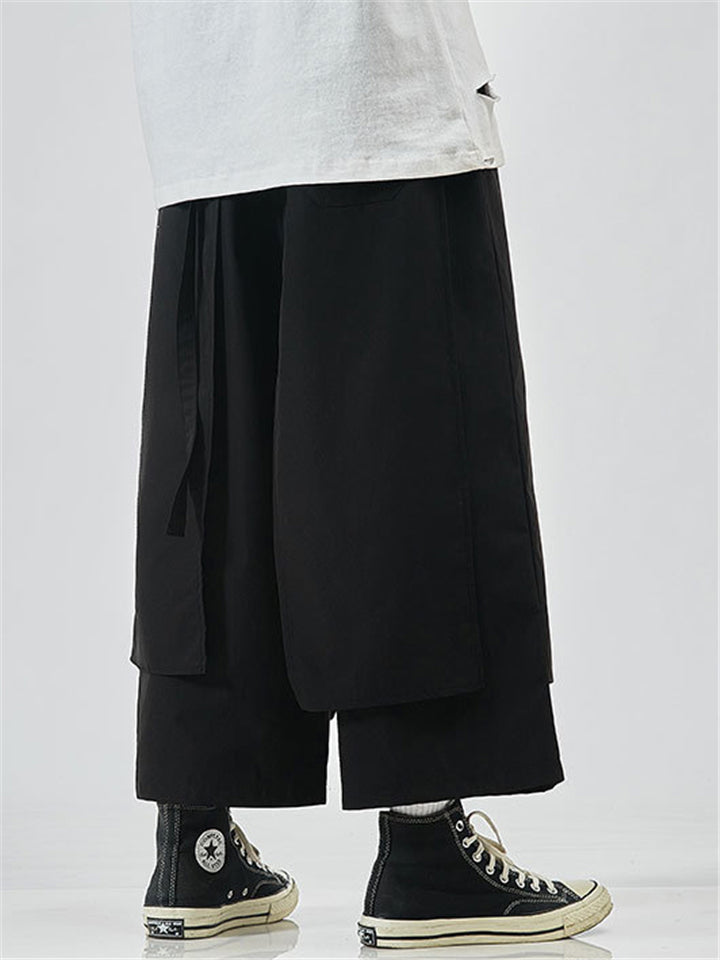 Men's Japanese Style Vintage Solid Color Texture Scimitar Pants