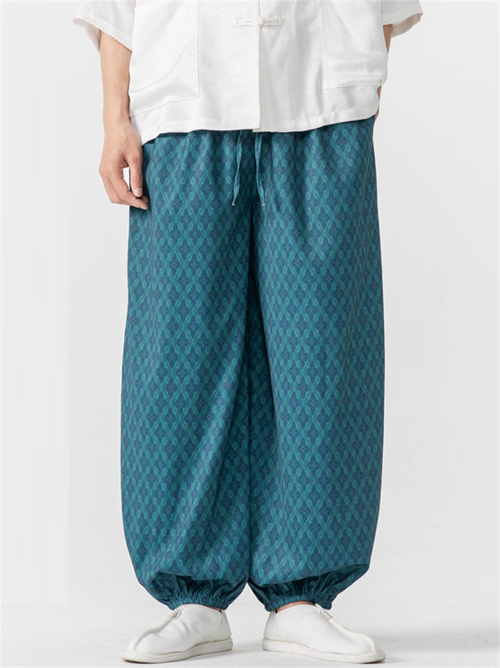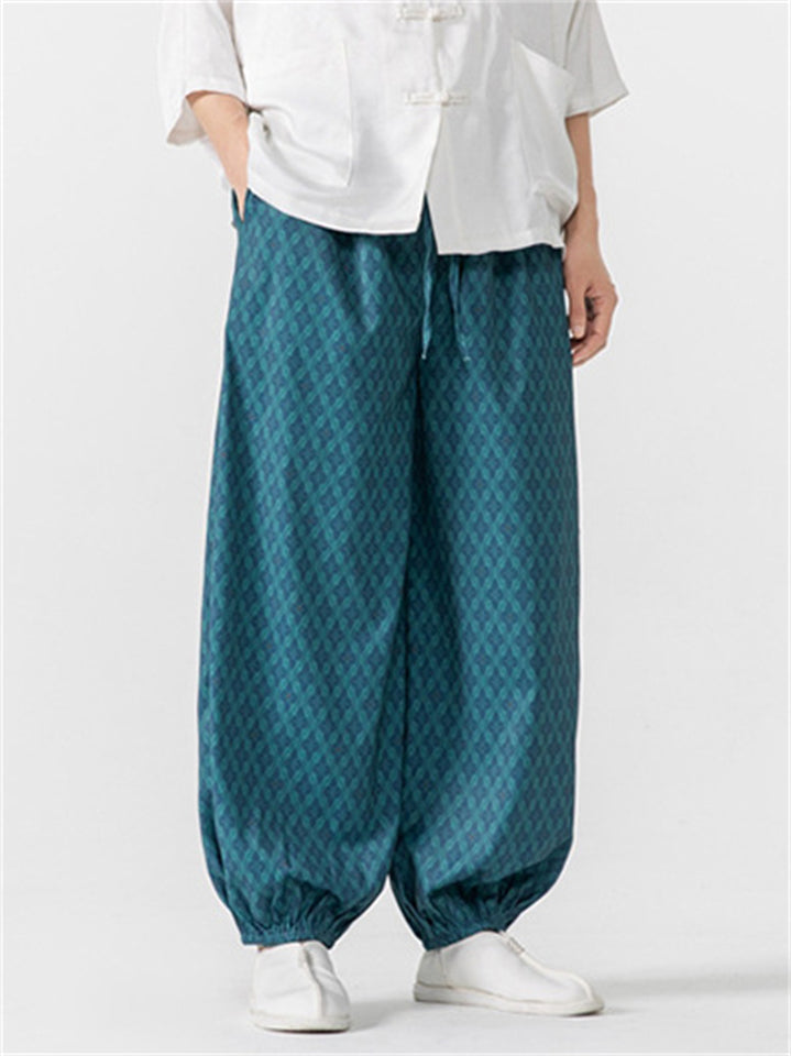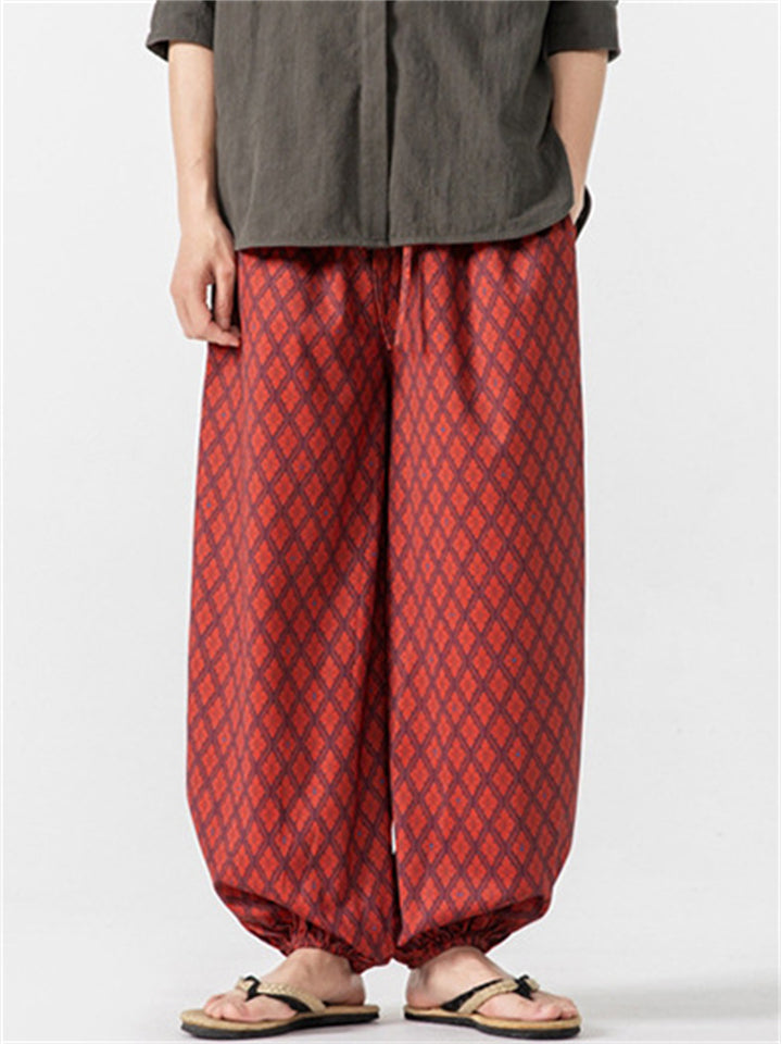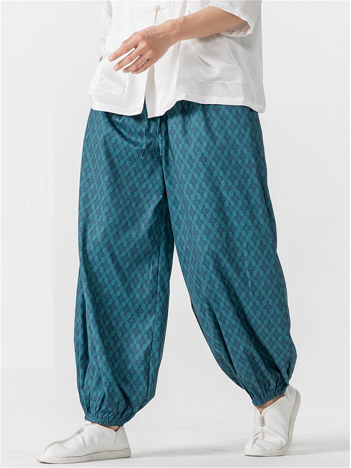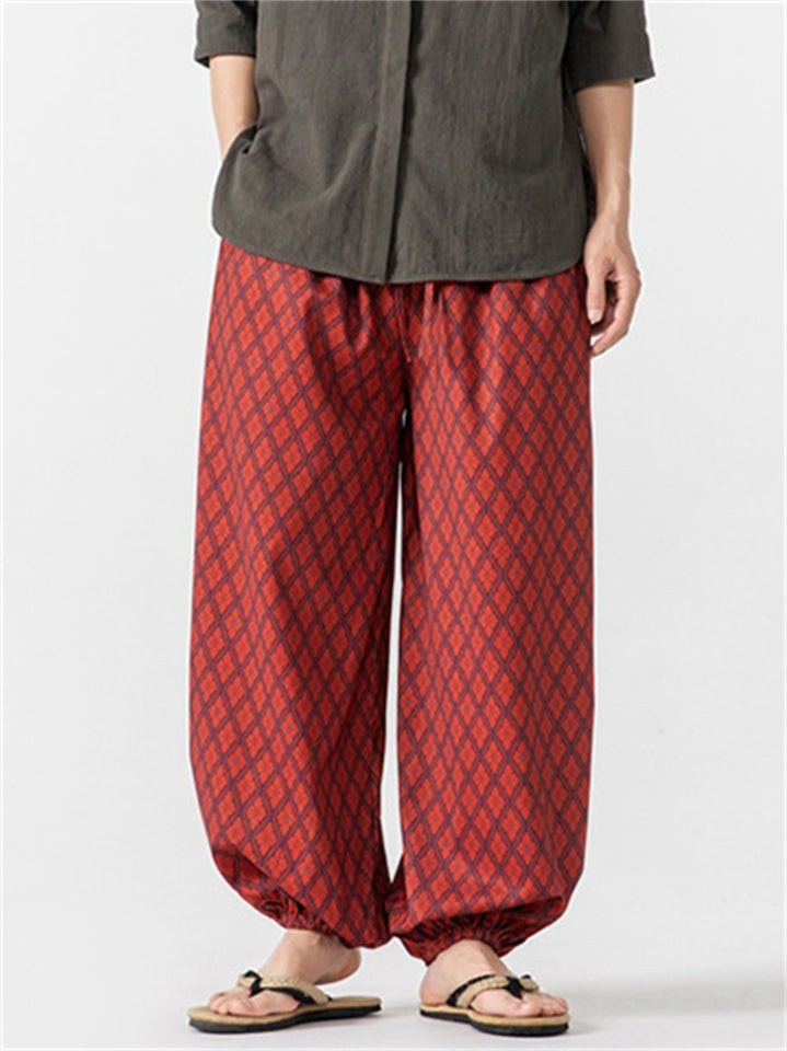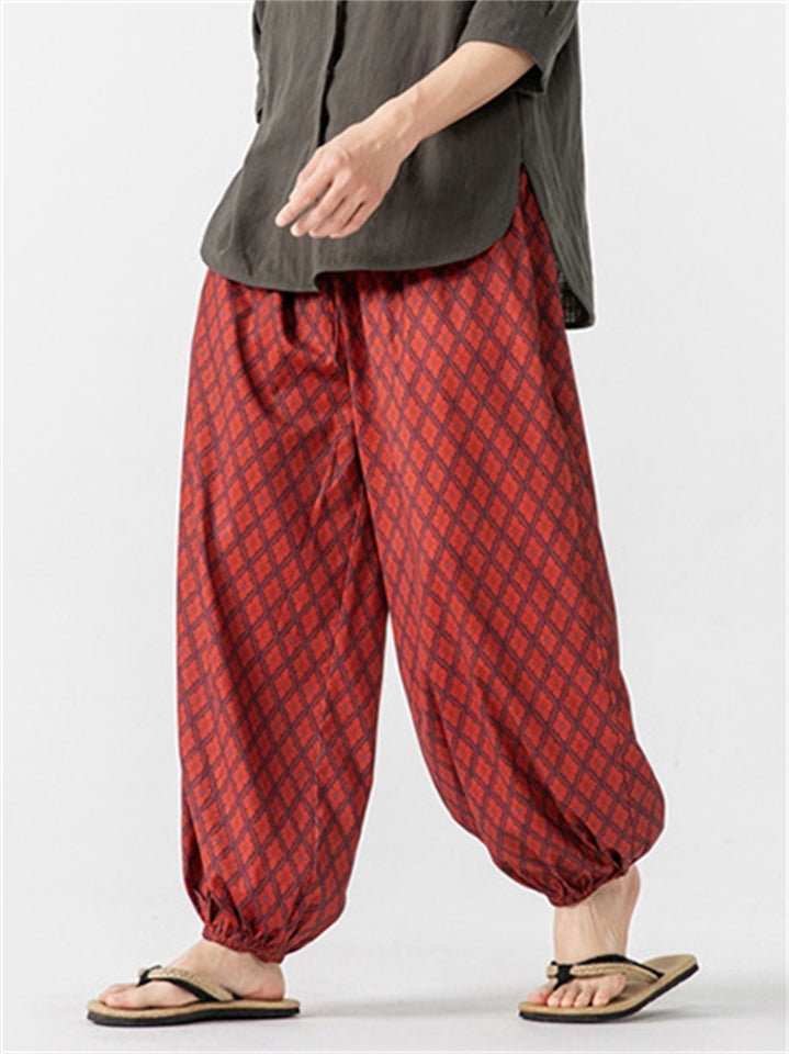 Men's Loose Retro Chinese Style Plaid Lantern Pants