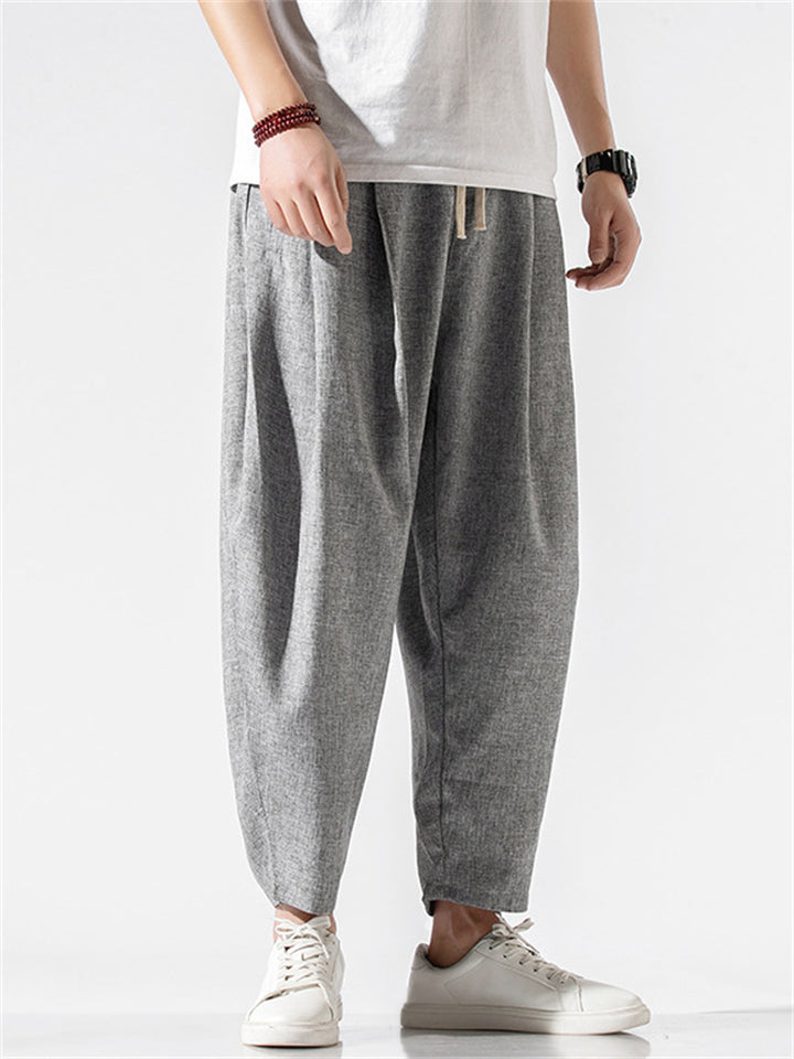 Vintage Japanese Street Style Drawstring Linen Pants for Men