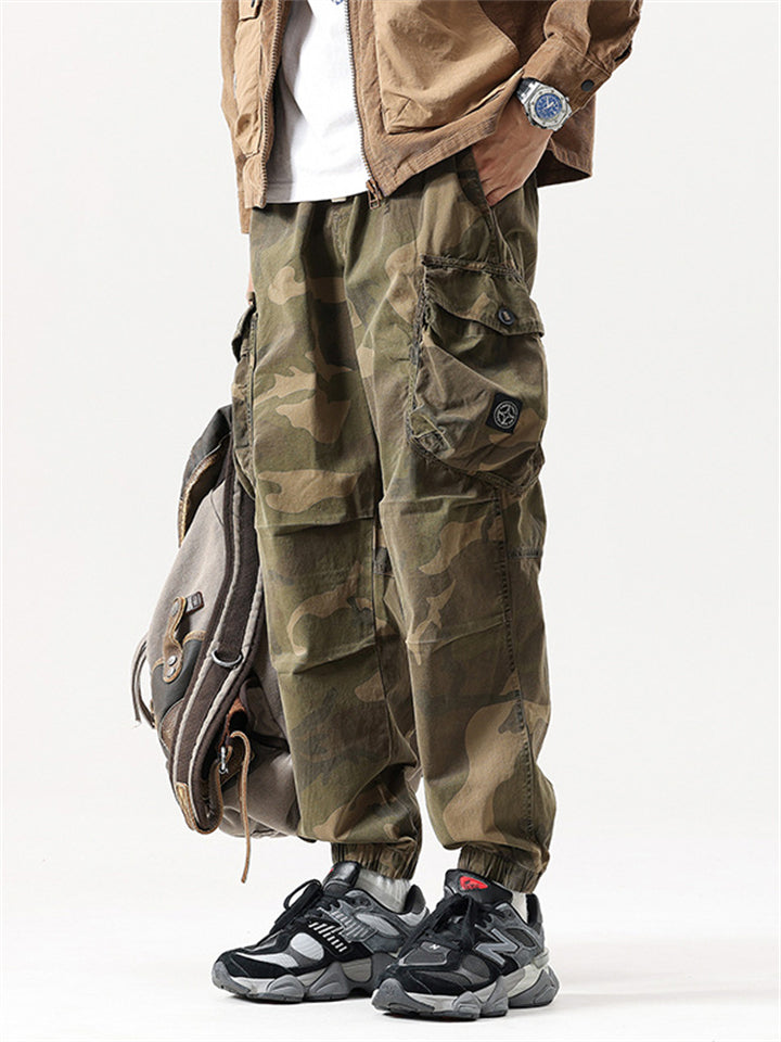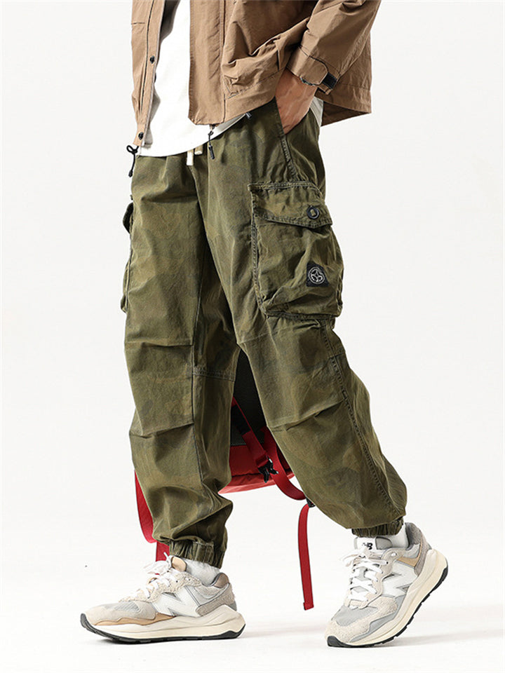Men's Japanese Style Vintage Solid Color Texture Scimitar Pants