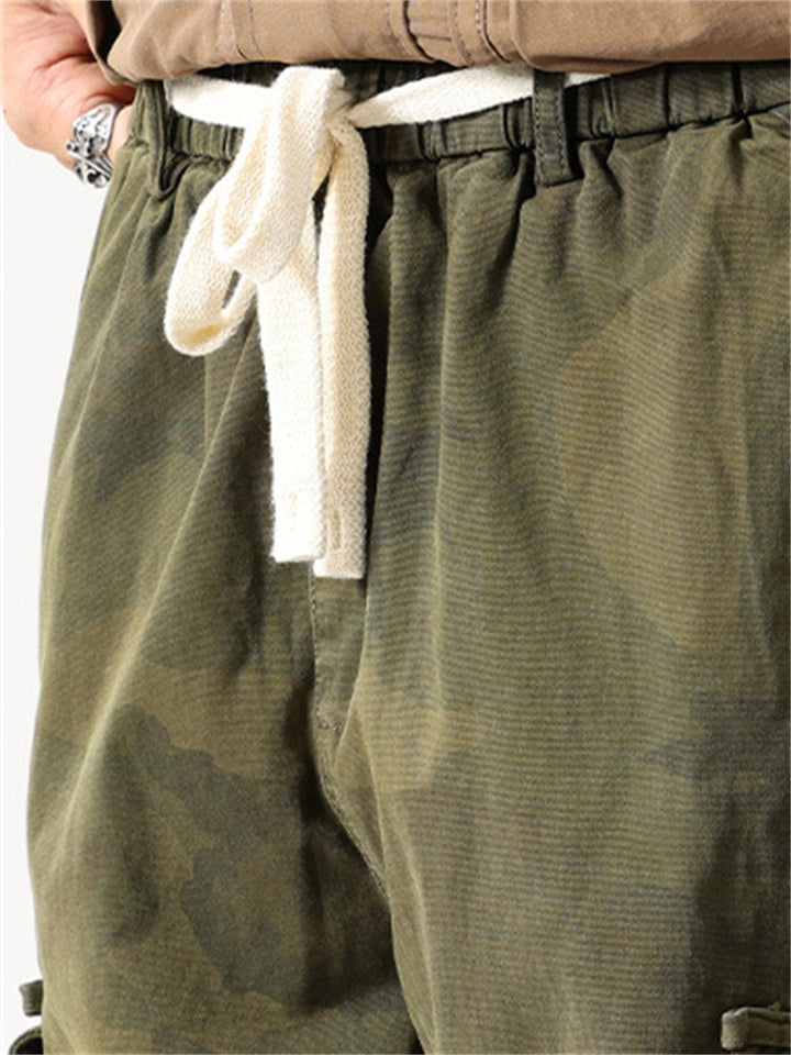 Vintage Japanese Street Style Drawstring Linen Pants for Men