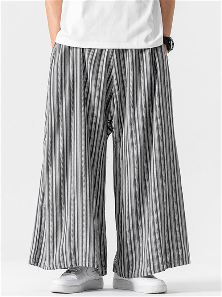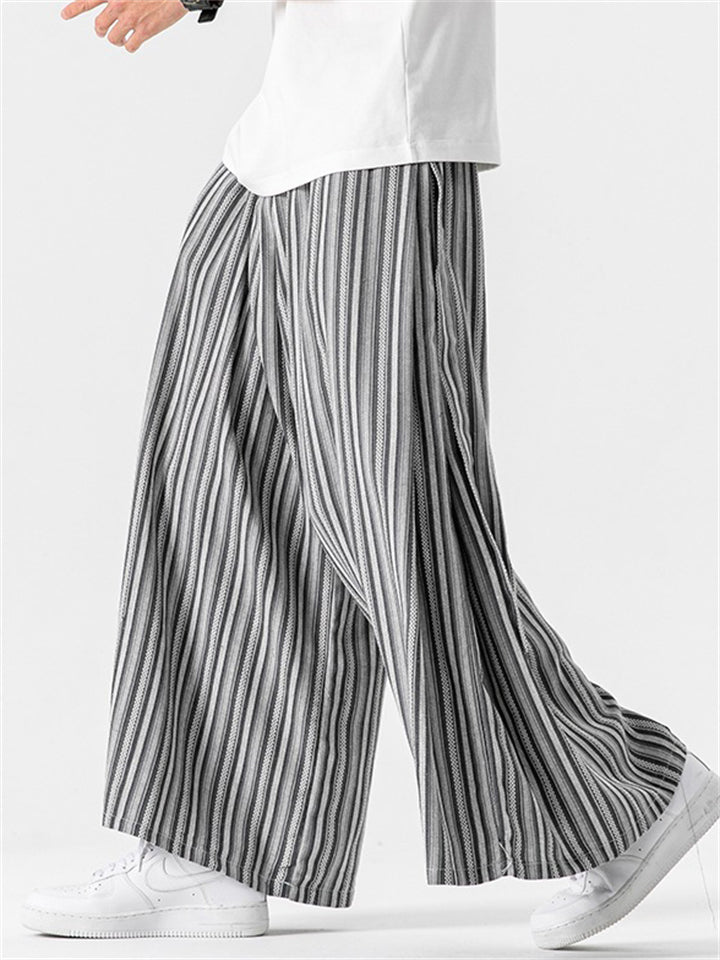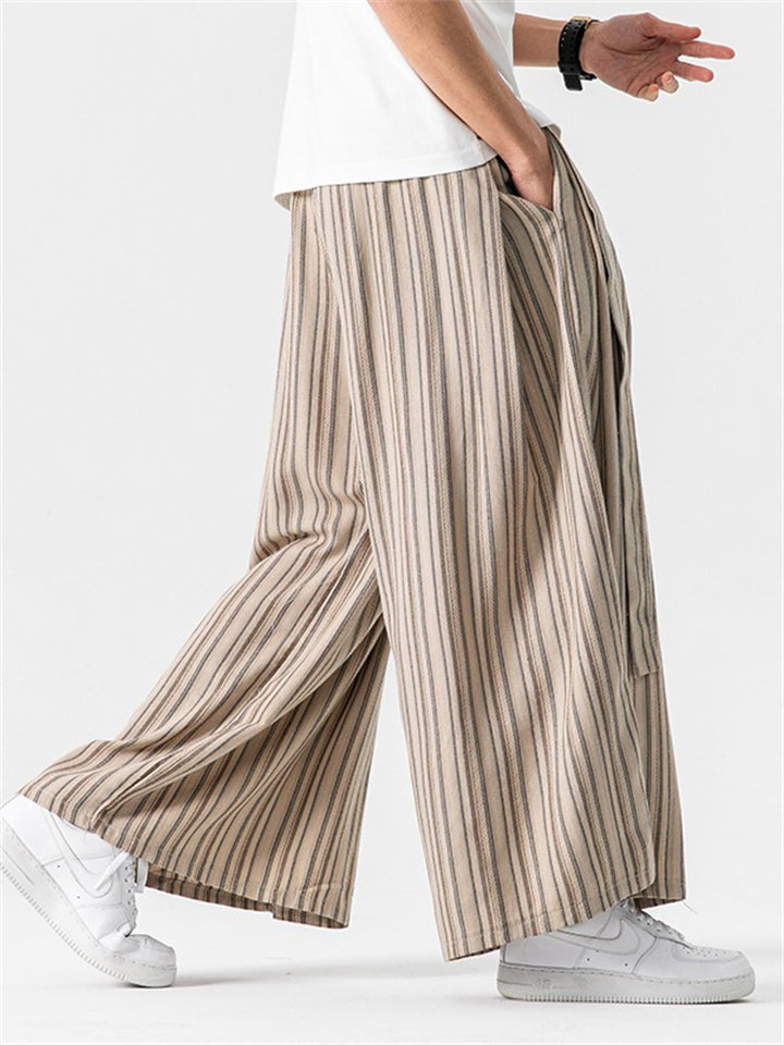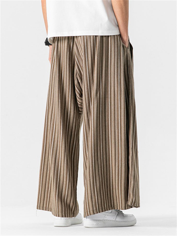 Men's Retro Cotton Linen Stripe Wide Leg Straight Pants