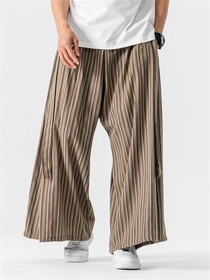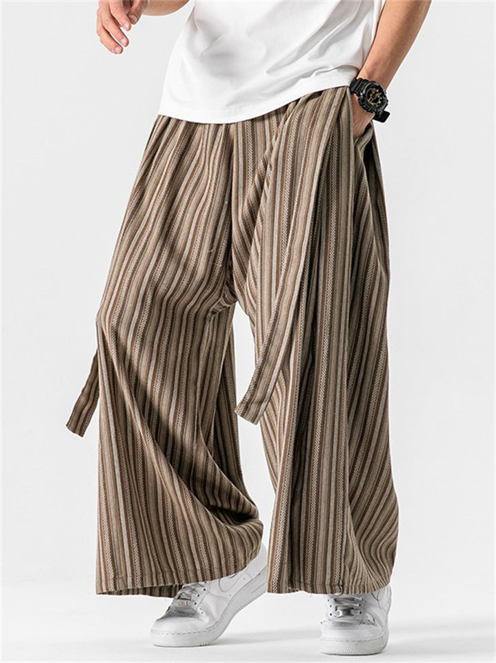Men's Autumn Vintage Striped Drawstring Wide Leg Pants