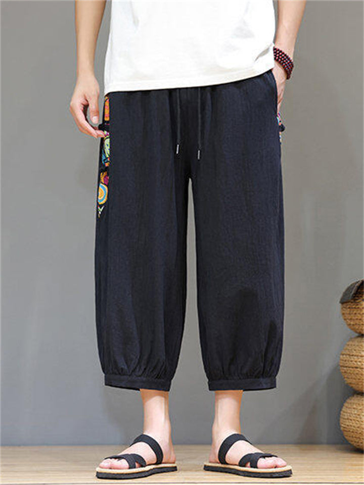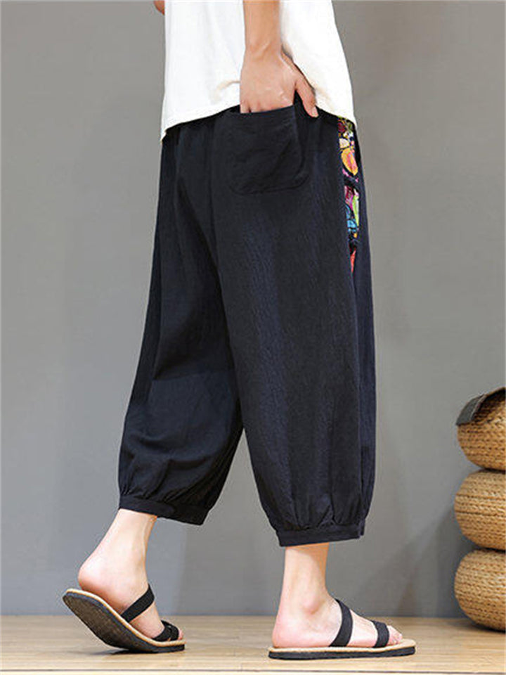 Men's Summer Ethnic Style Beach Bloomers Drop Crotch Capri Pants