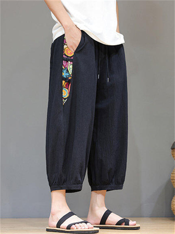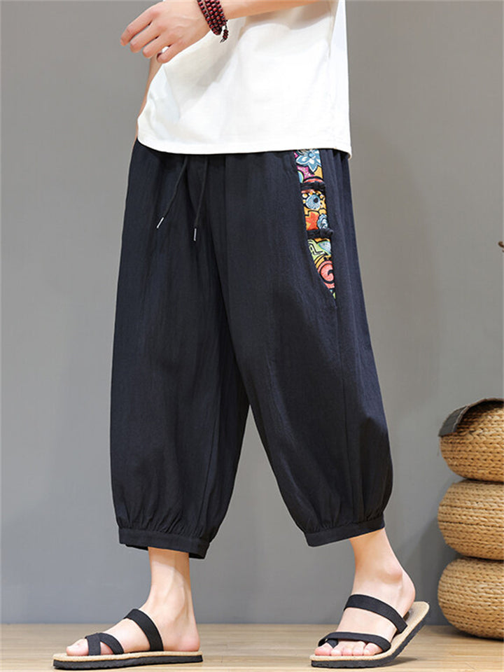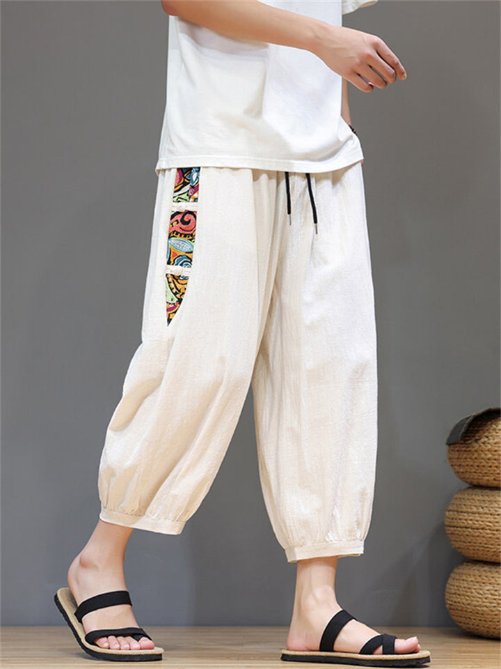 Men's Retro Ethnic Style Contrast Color Casual Beach Capri Pants