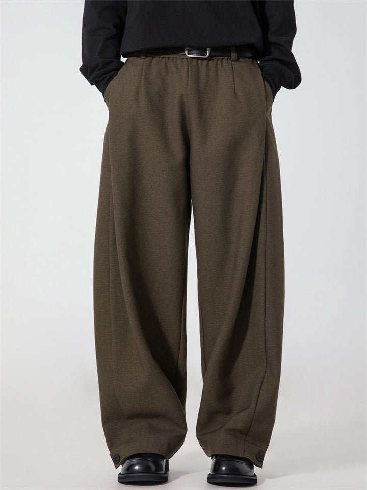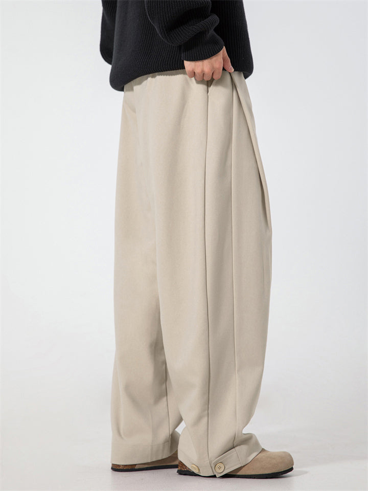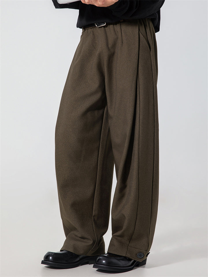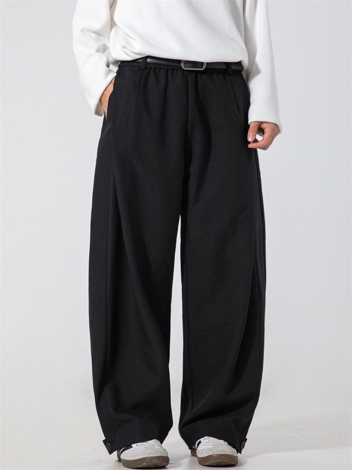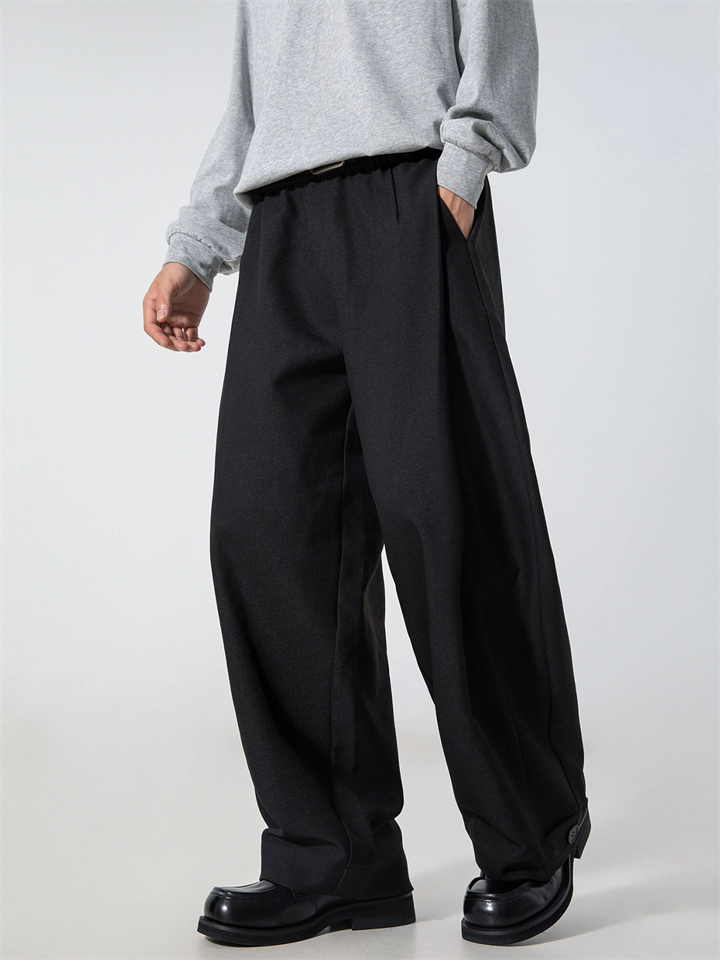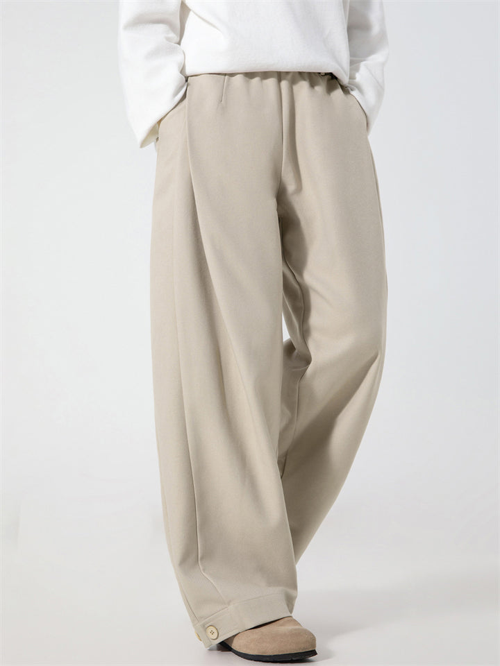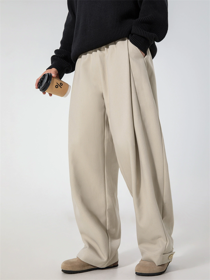 Men's Retro Pleated Solid Color Elastic Waist Drape Wide Leg Suit Pants