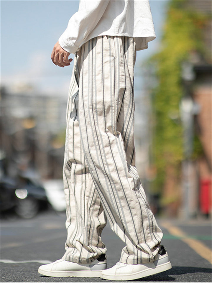 Men's Retro Straight Leg Striped Casual Pants with Elastic Waist