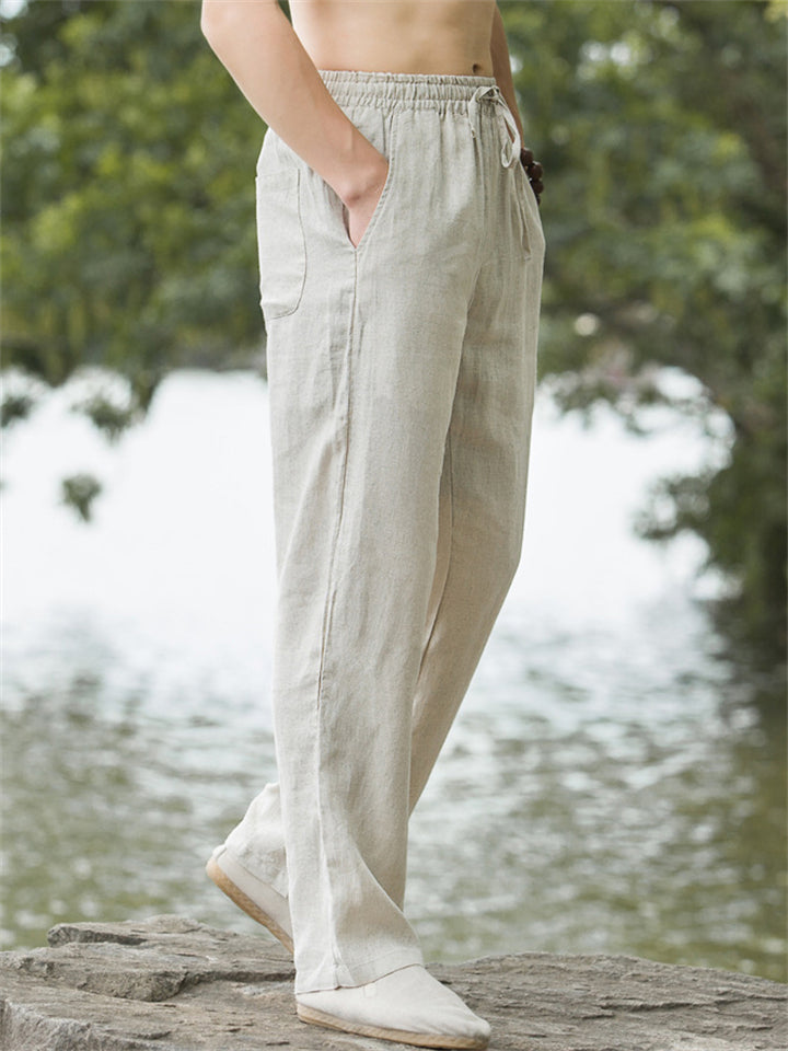Men's Retro Summer Cotton Linen Drawstring Pants