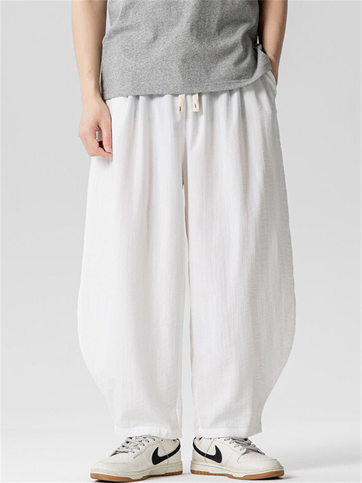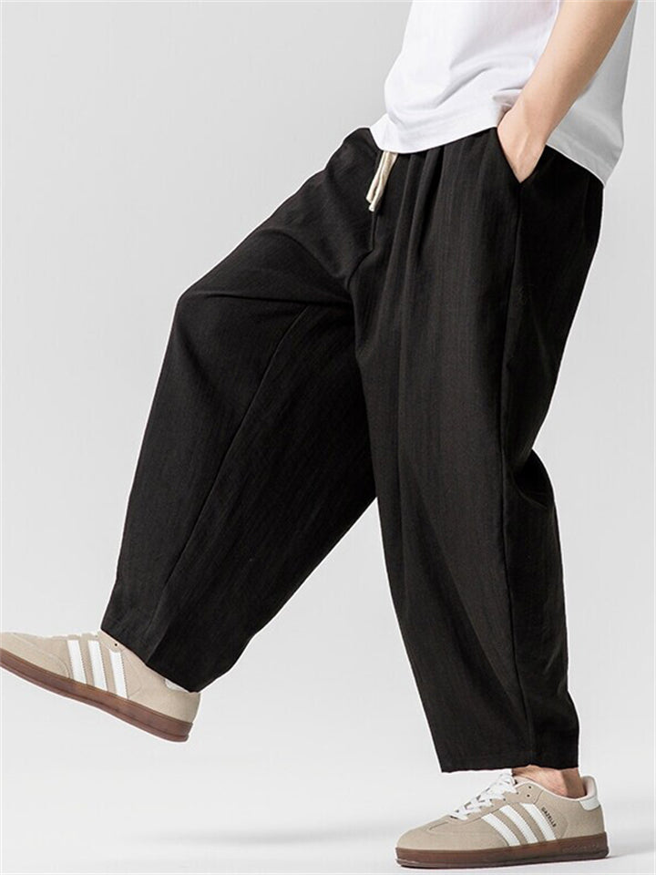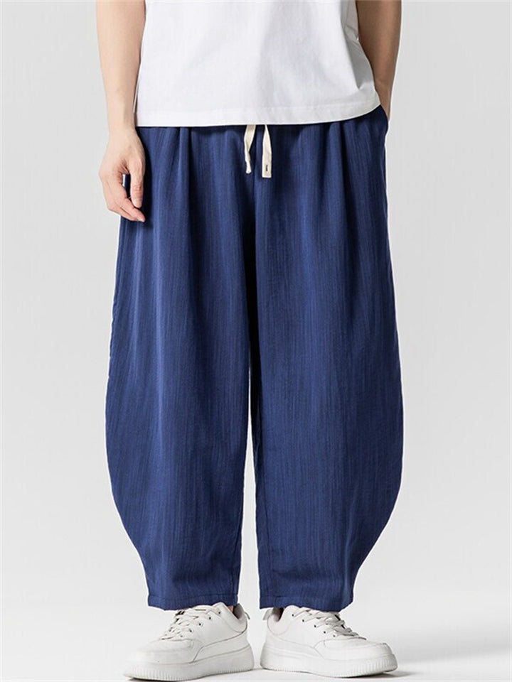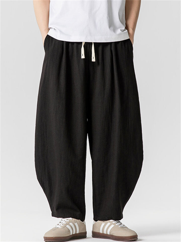 Vintage Japanese Street Style Drawstring Linen Pants for Men