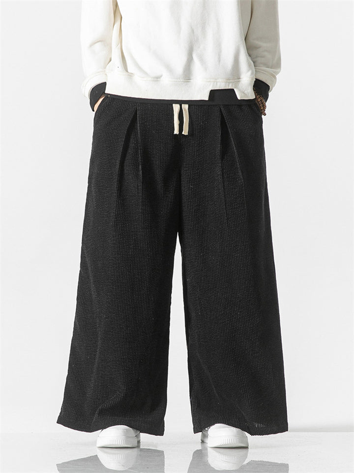 Men's Japanese Style Vintage Solid Color Texture Scimitar Pants