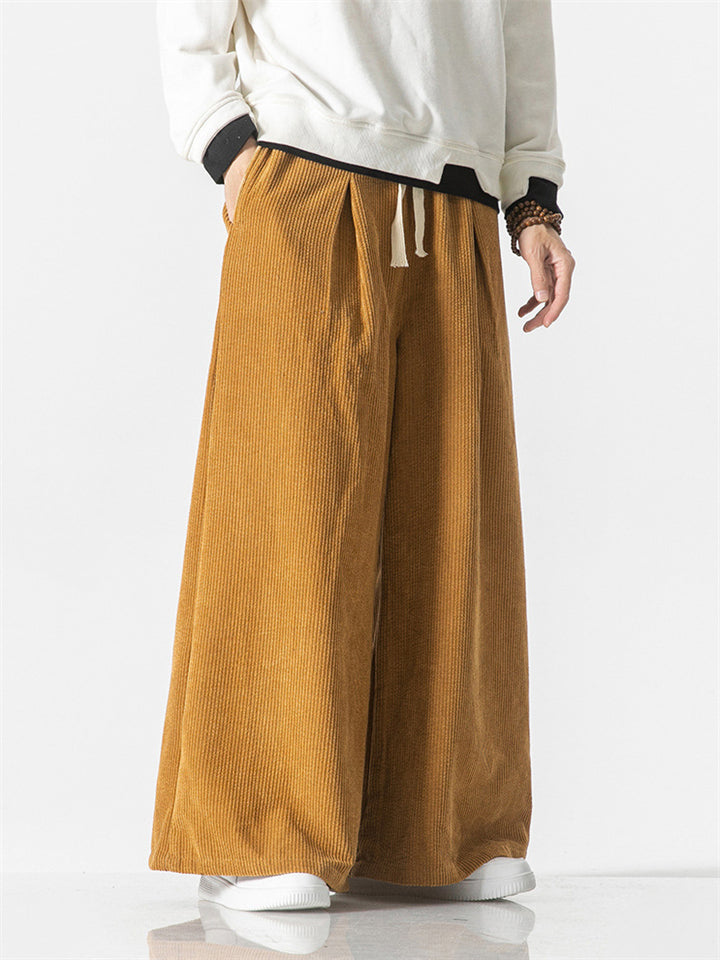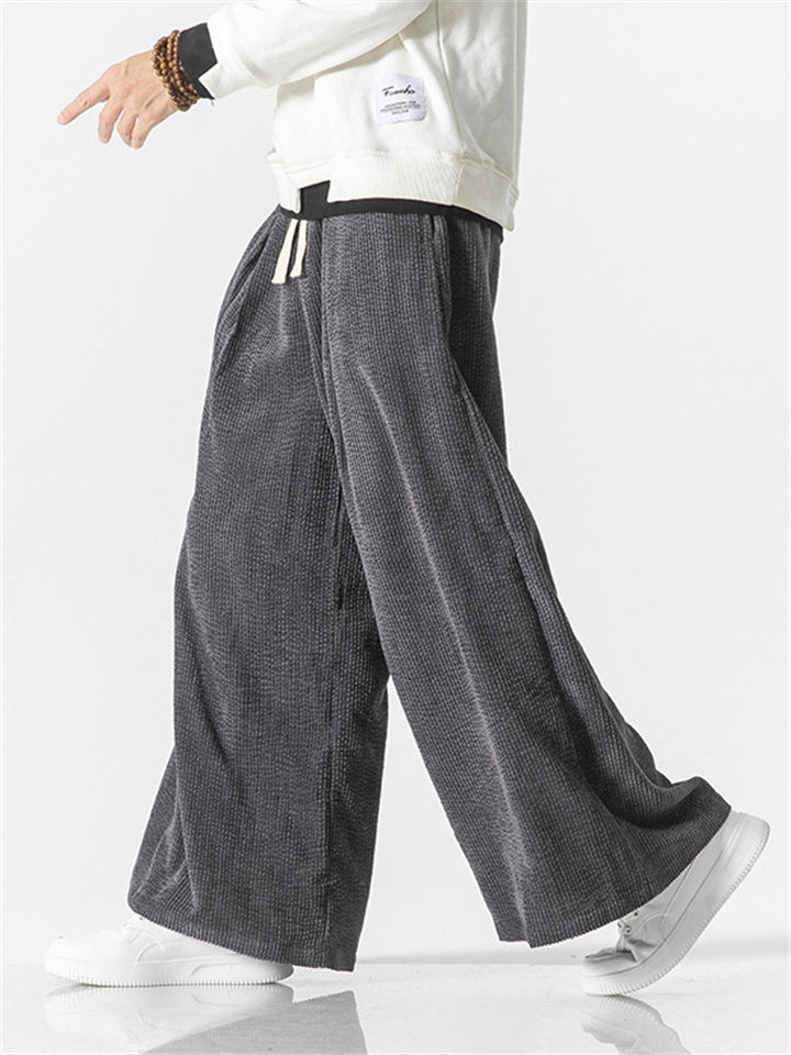 Men's Autumn Vintage Striped Drawstring Wide Leg Pants