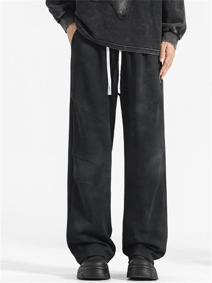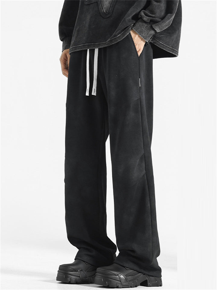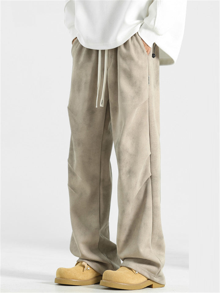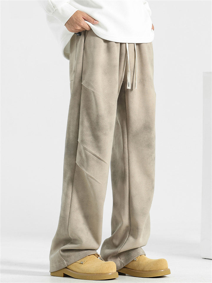 Men's Solid Color Casual Elastic Wide Leg Straight Pants