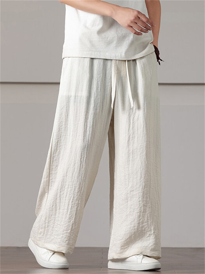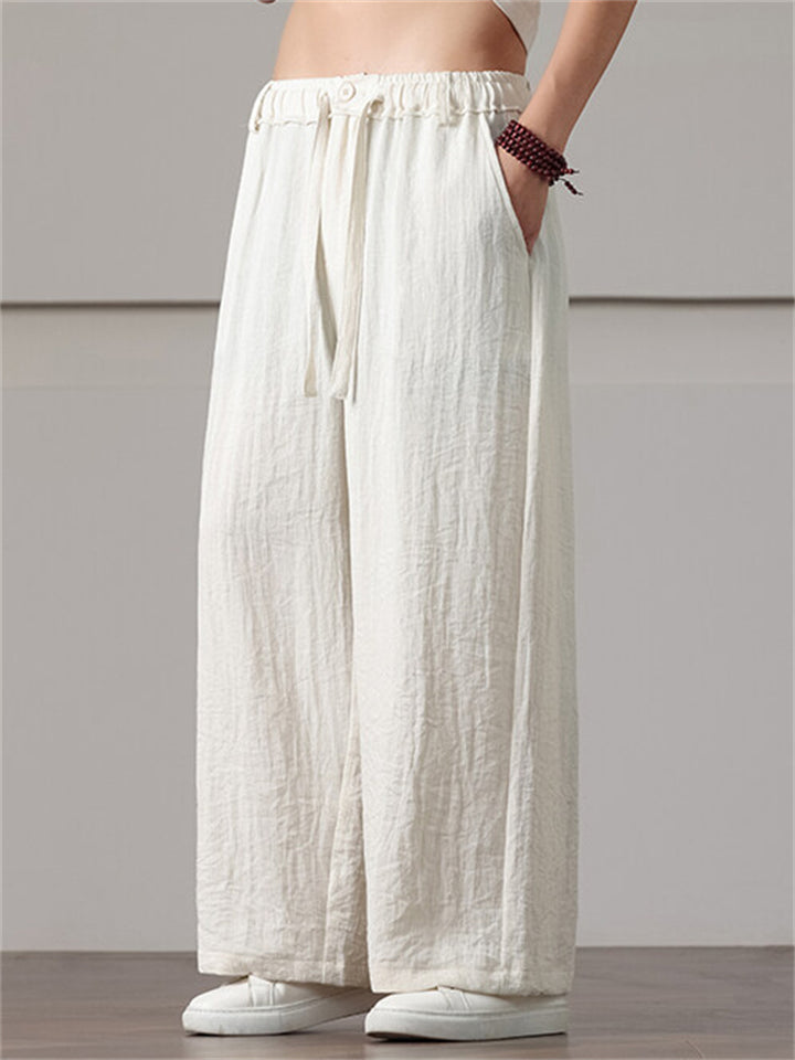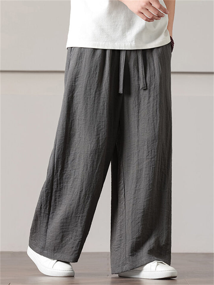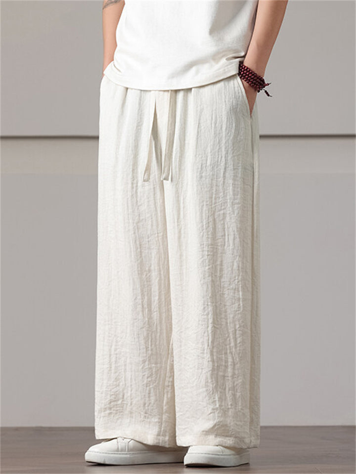 Men's Solid Color Cotton Linen Loose Wide Leg Pants