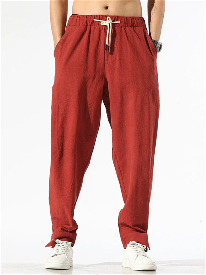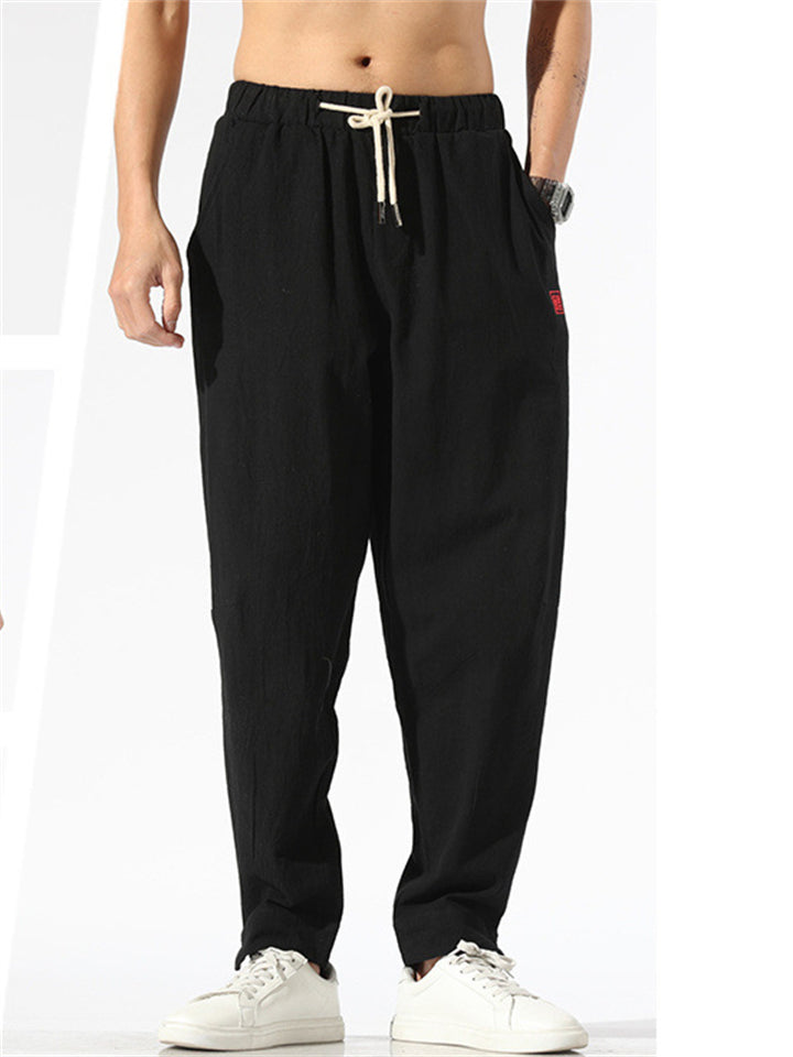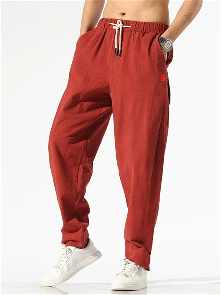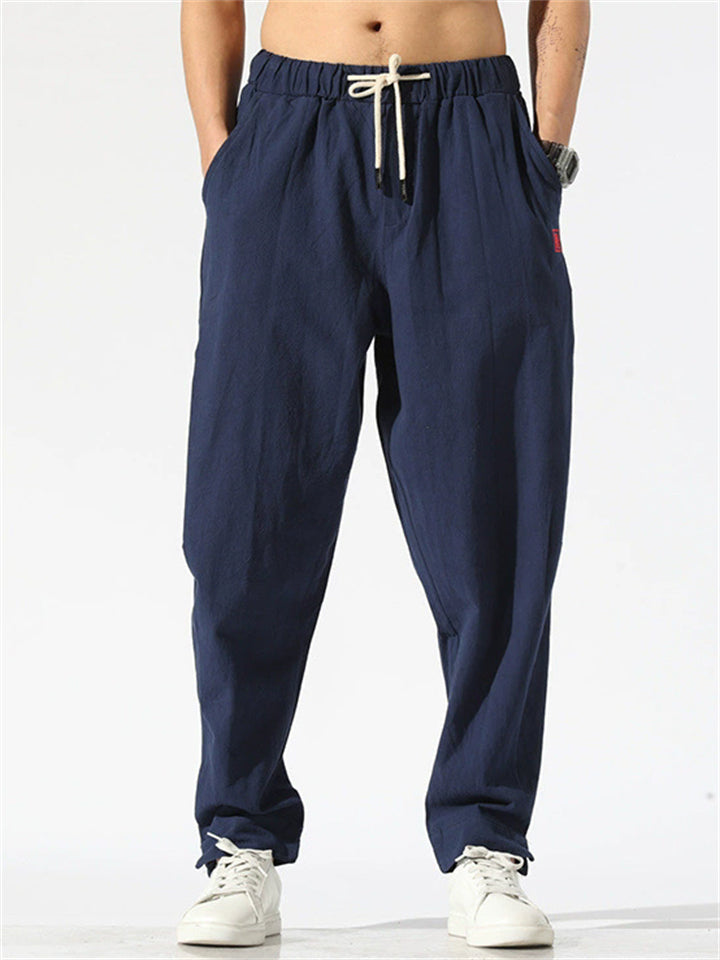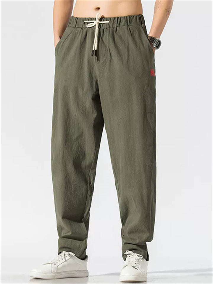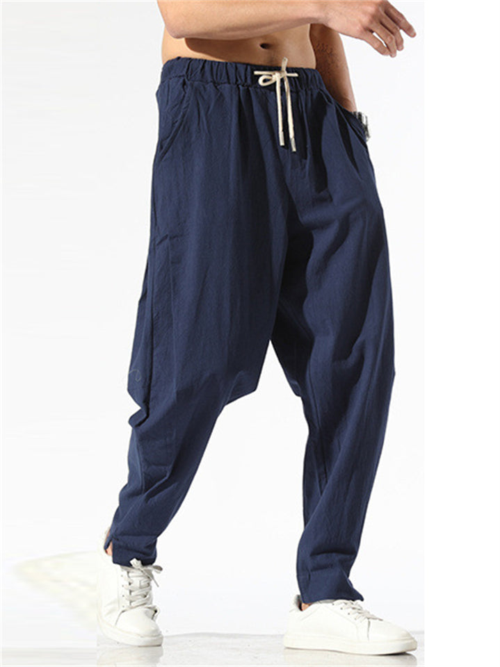 Vintage Japanese Street Style Drawstring Linen Pants for Men