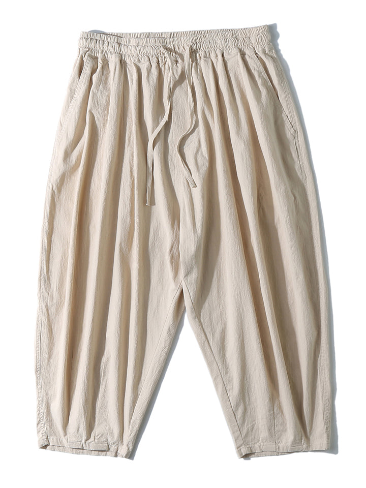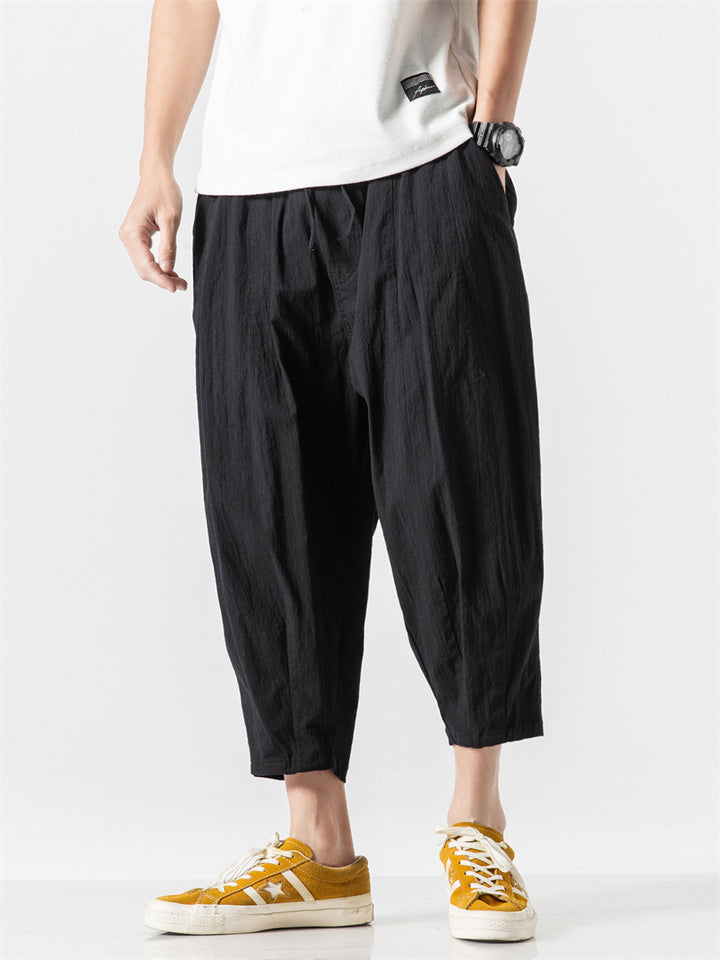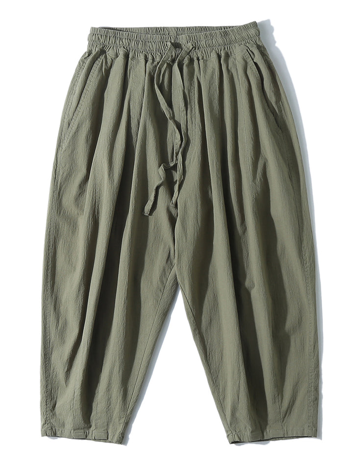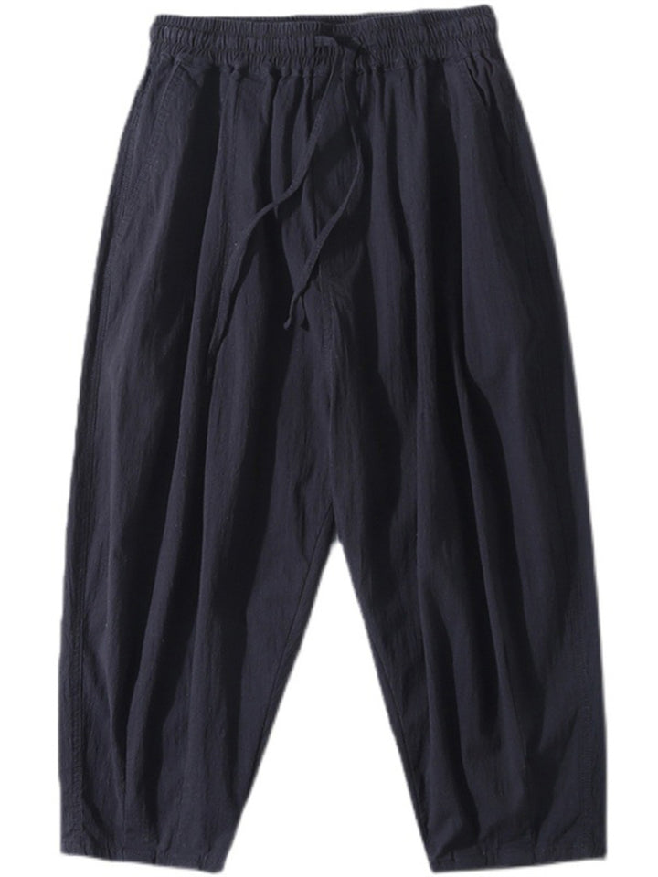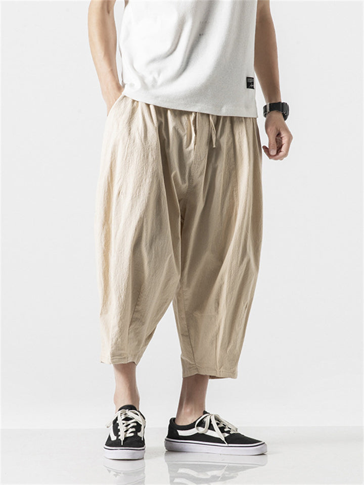 Vintage Japanese Street Style Drawstring Linen Pants for Men