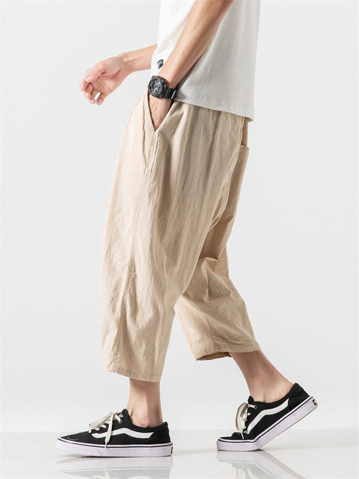 Men's Summer Ethnic Style Beach Bloomers Drop Crotch Capri Pants
