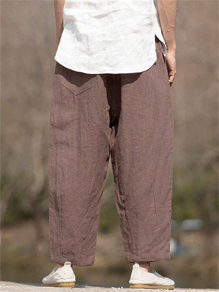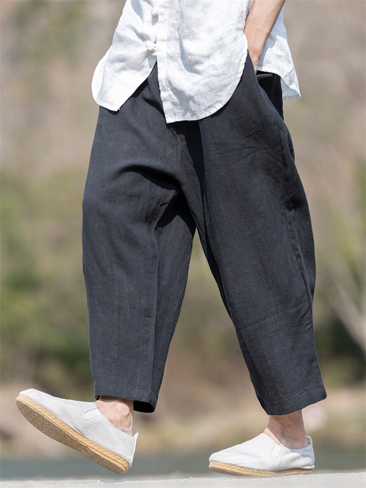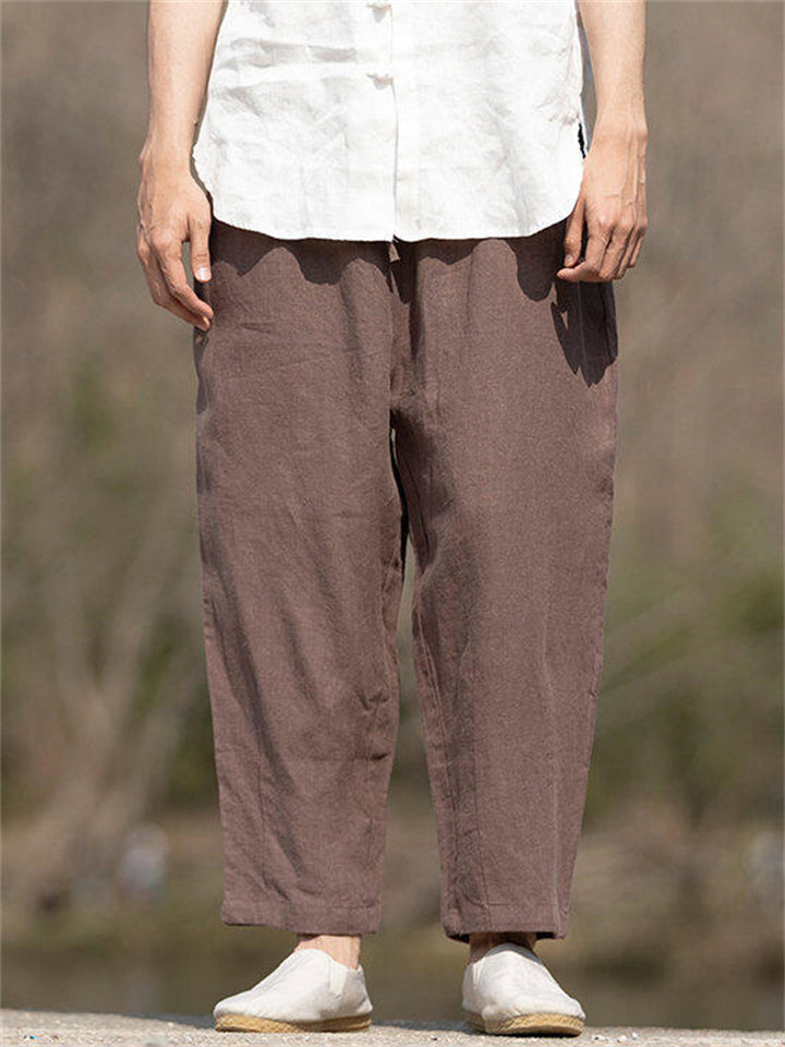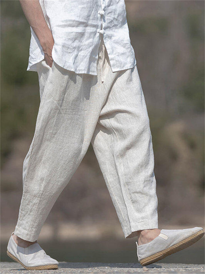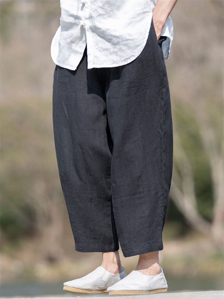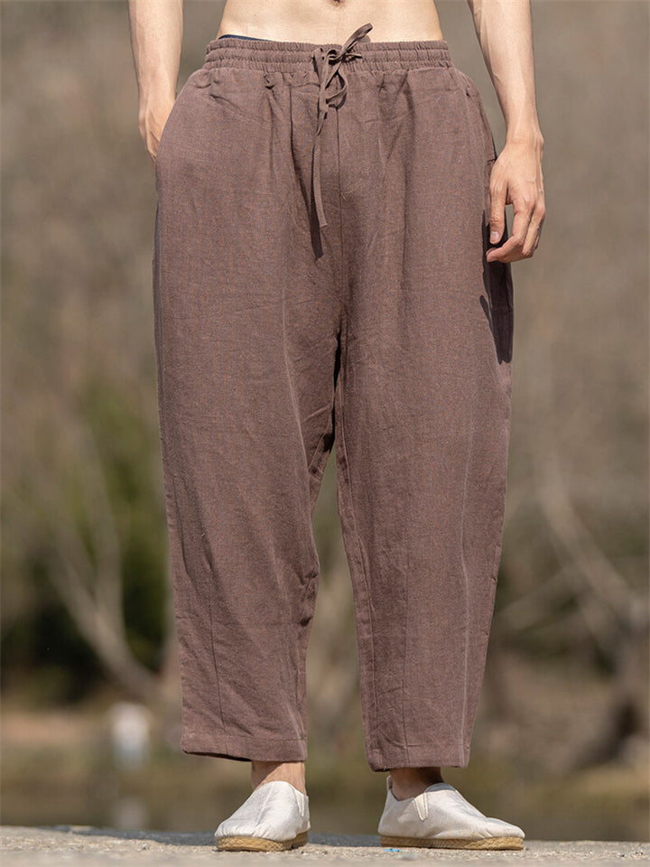 Vintage Japanese Street Style Drawstring Linen Pants for Men
