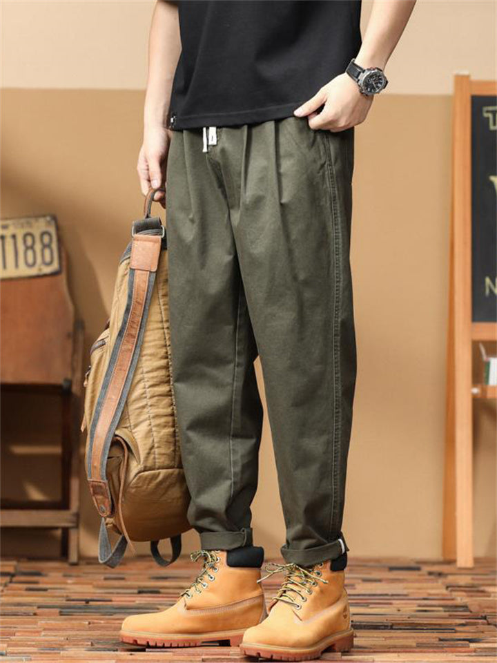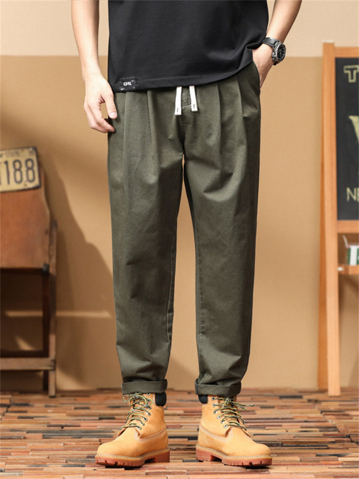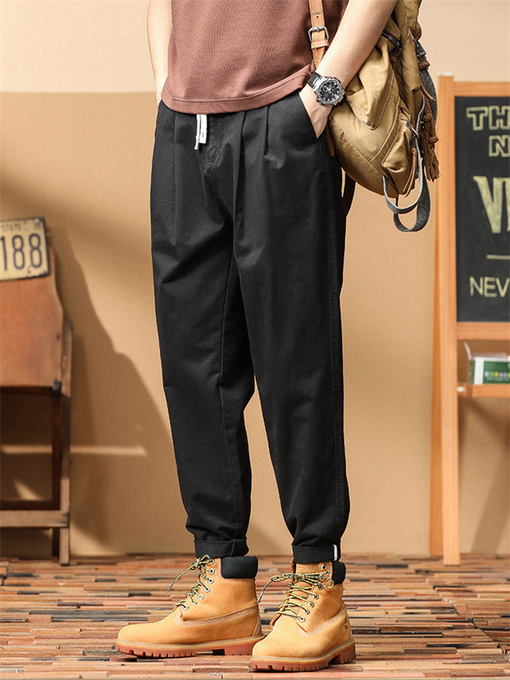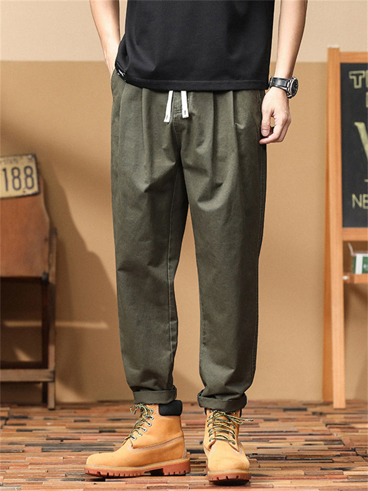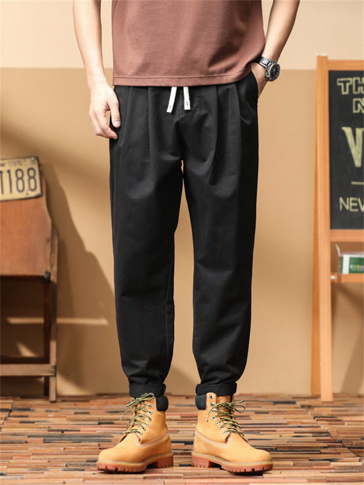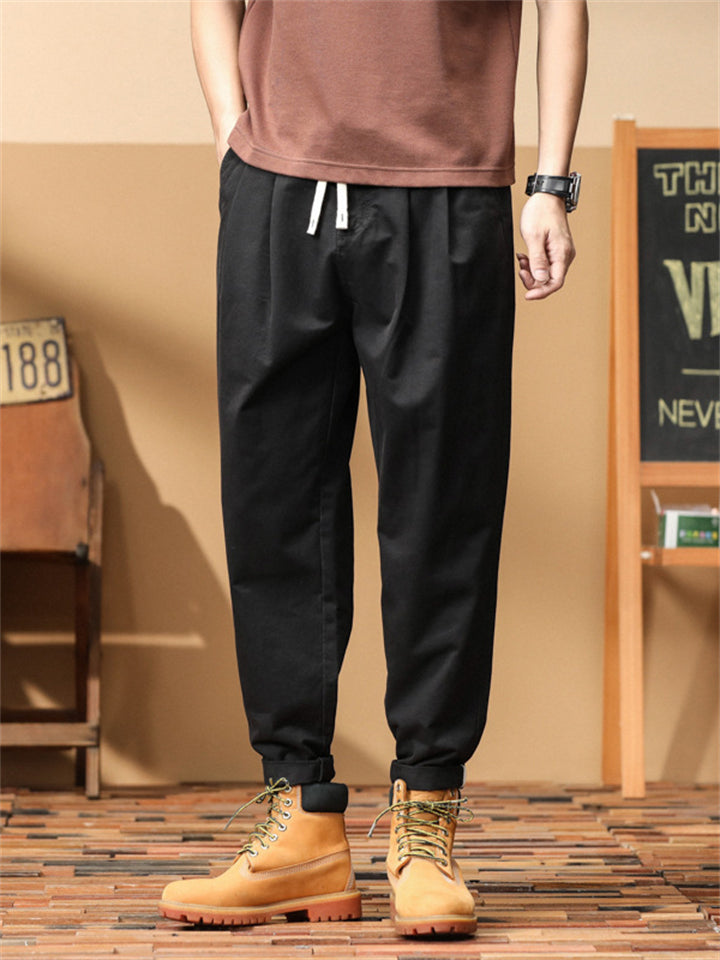 Vintage Japanese Street Style Drawstring Linen Pants for Men