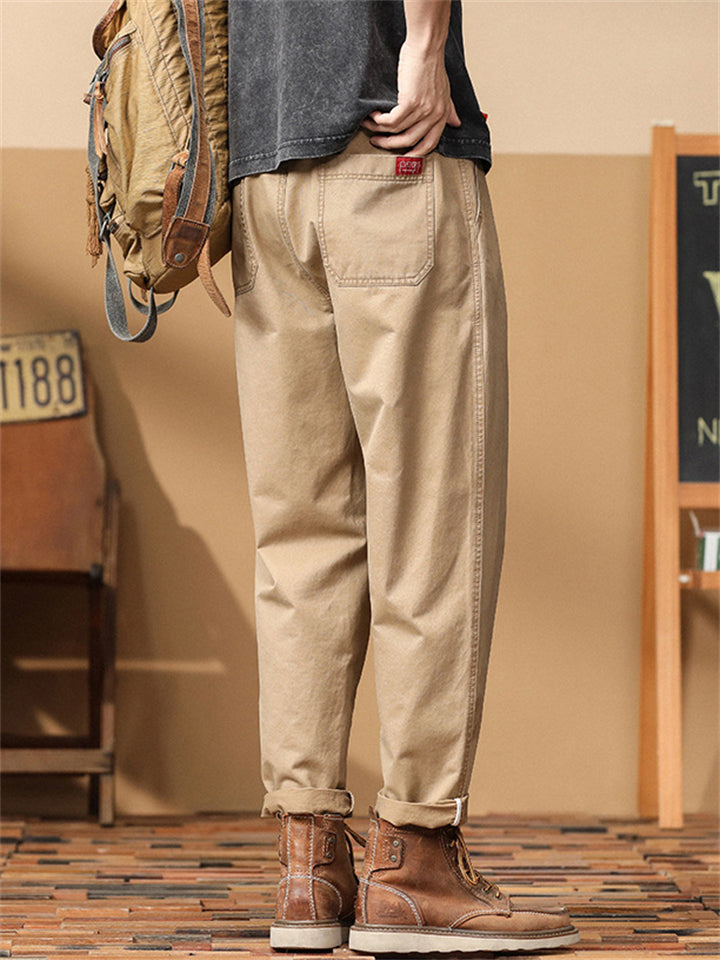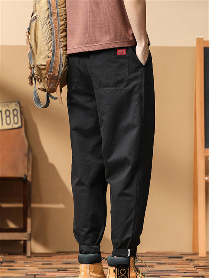 Men's Japanese Style Vintage Solid Color Texture Scimitar Pants
