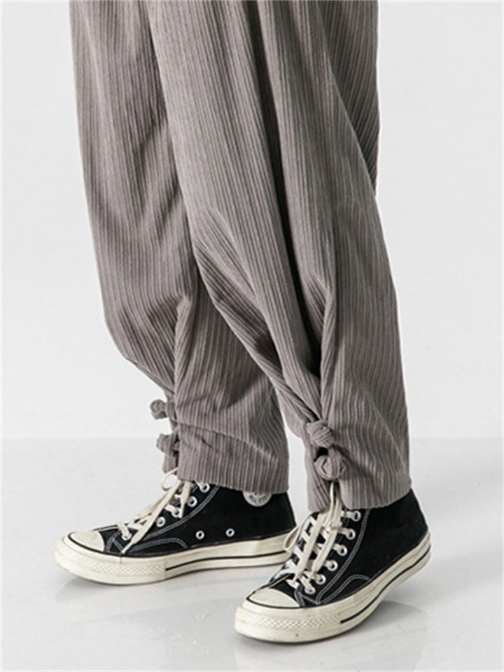 Vintage Japanese Street Style Drawstring Linen Pants for Men
