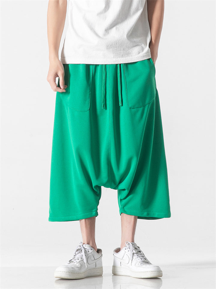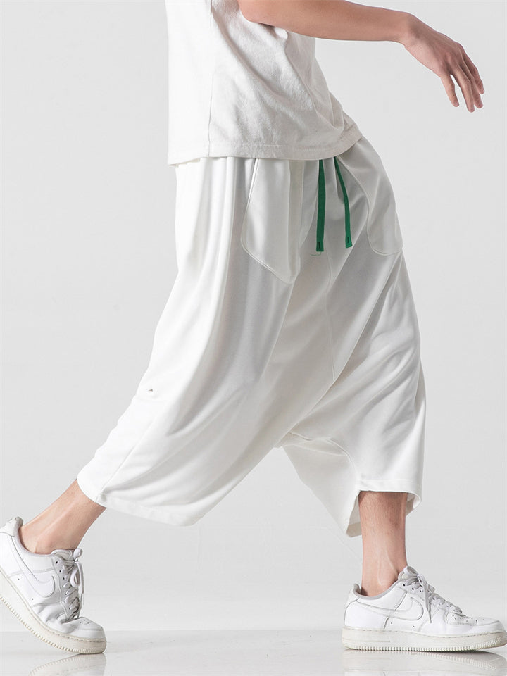 Men's Summer Ethnic Style Beach Bloomers Drop Crotch Capri Pants