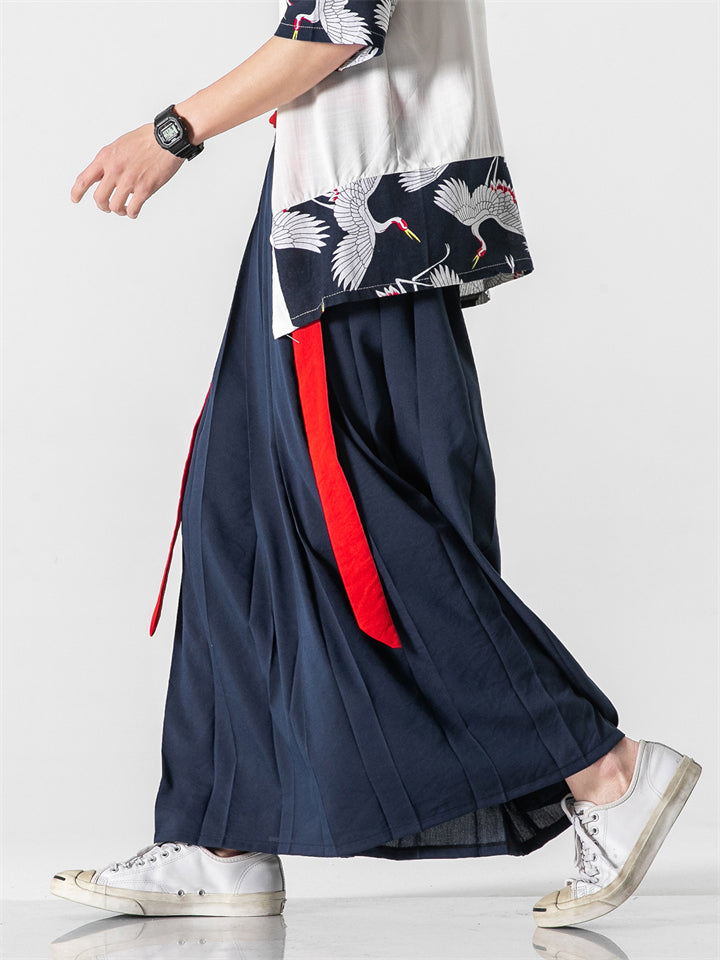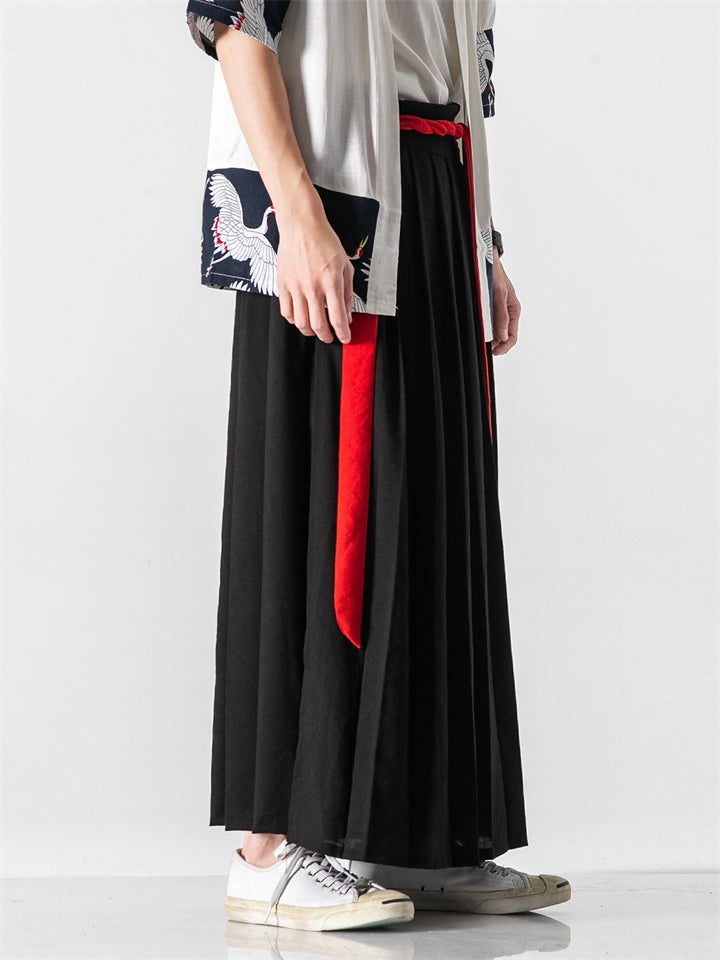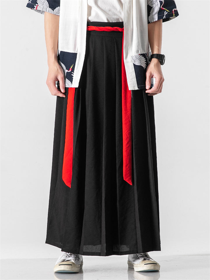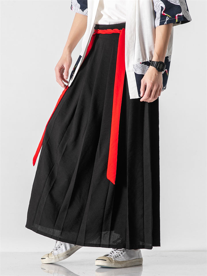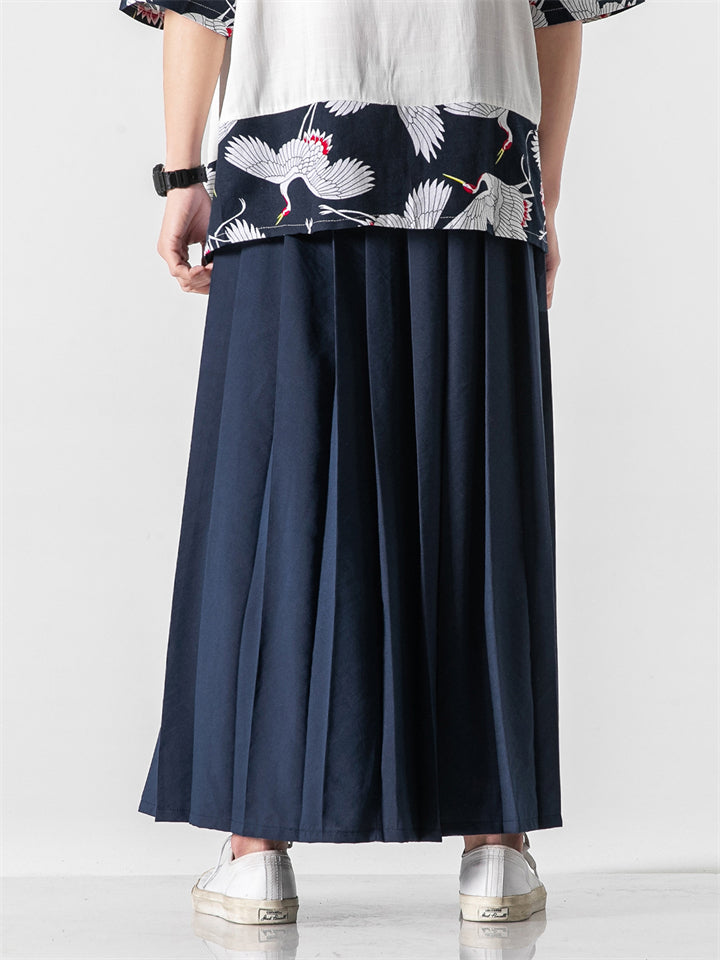 Men's Summer Ancient Style Solid Color Pleated Mamianqun