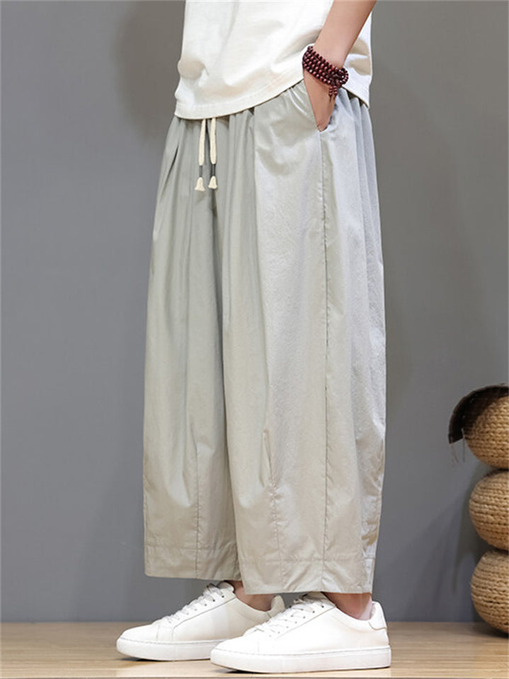 Men's Summer Casual Drawstring Wide Leg Cropped Pants