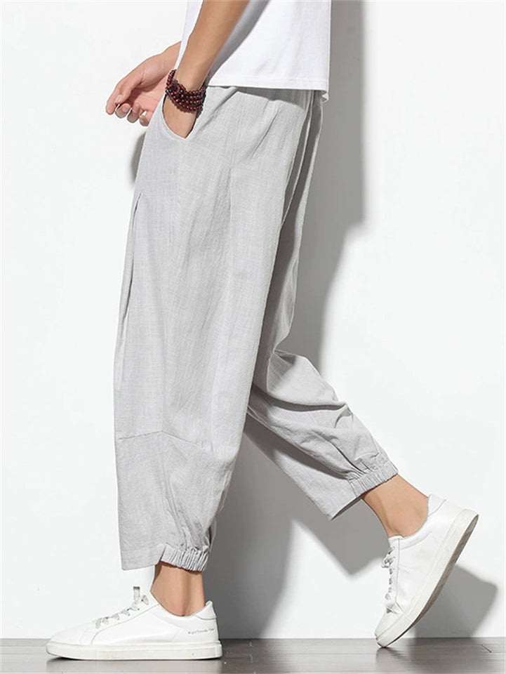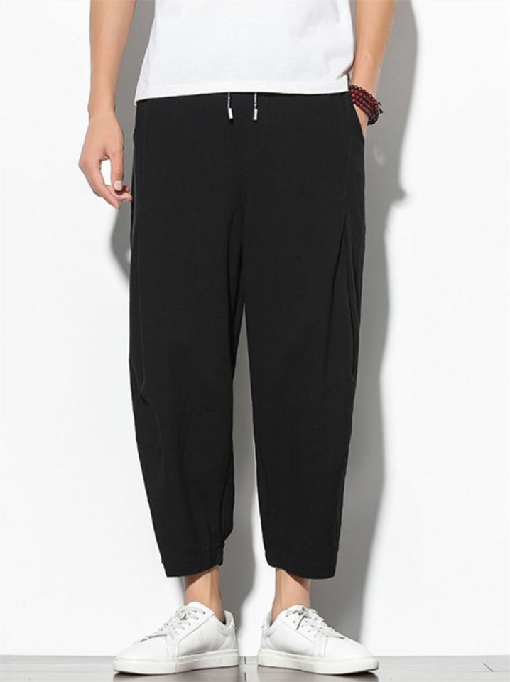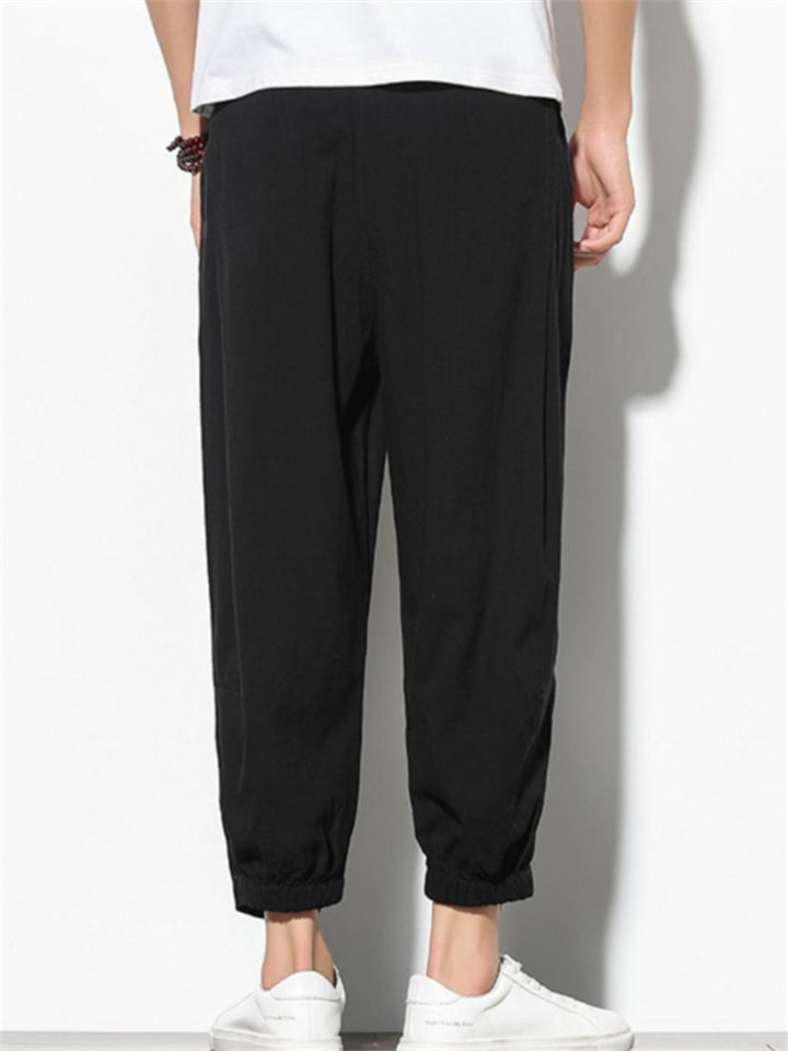 Vintage Japanese Street Style Drawstring Linen Pants for Men