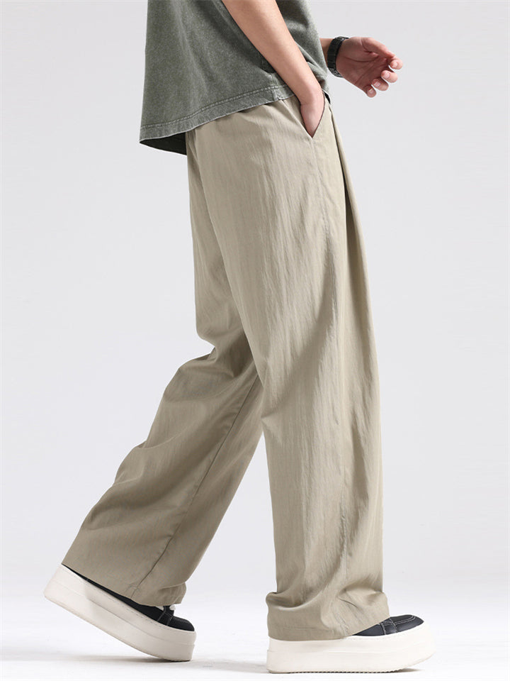 Men's Summer Elastic Waist Drape Wide Leg Straight Pants