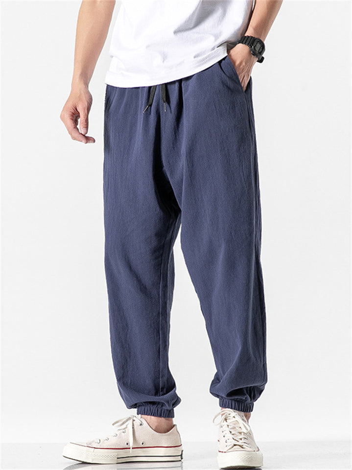 Vintage Japanese Street Style Drawstring Linen Pants for Men