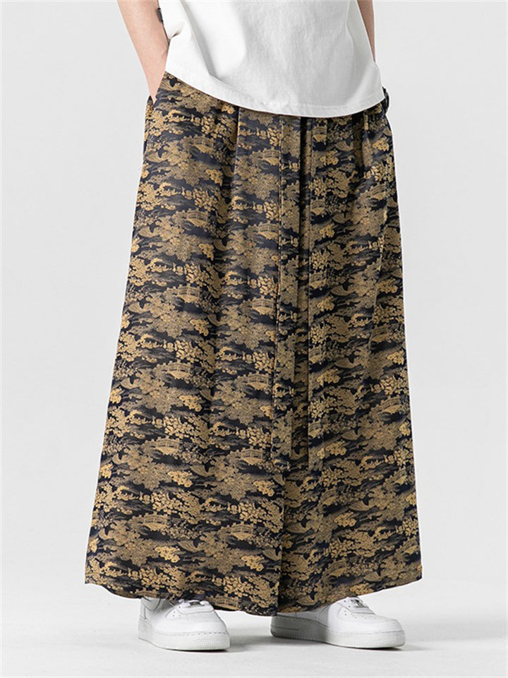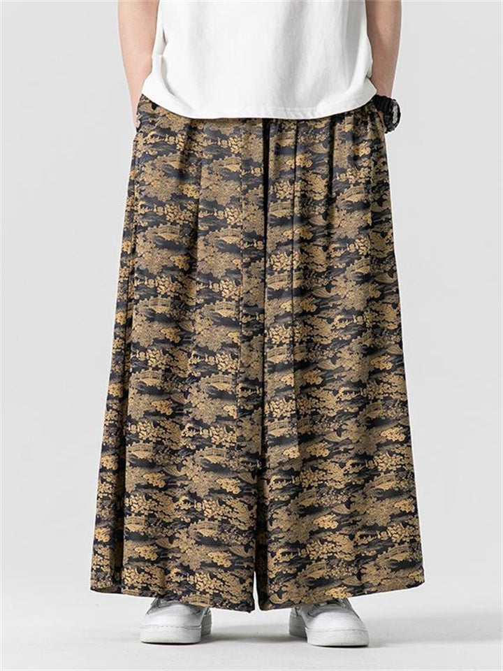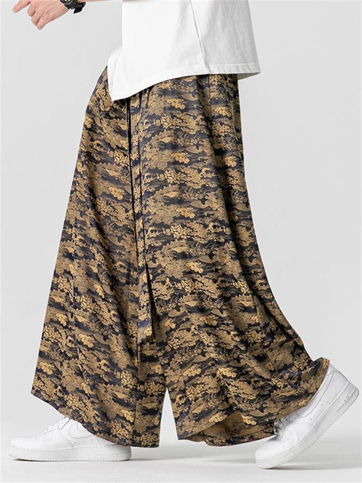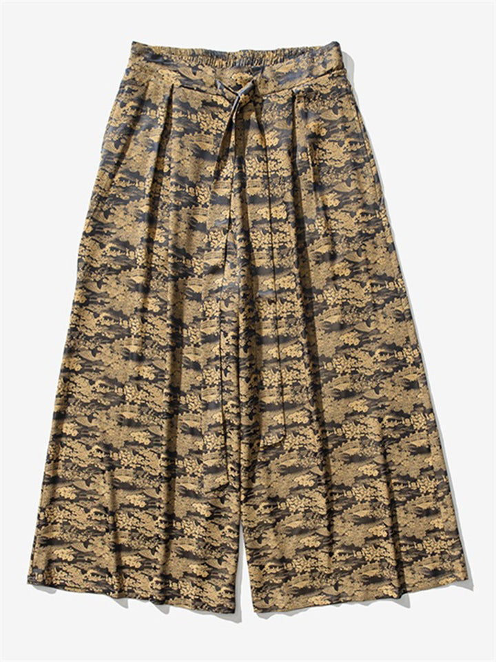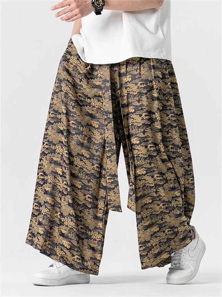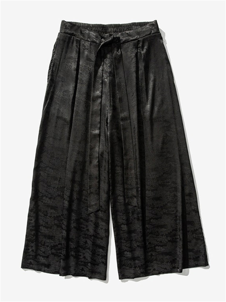 Men's Summer Lace Up Loose Staight-Leg Hakama Pants