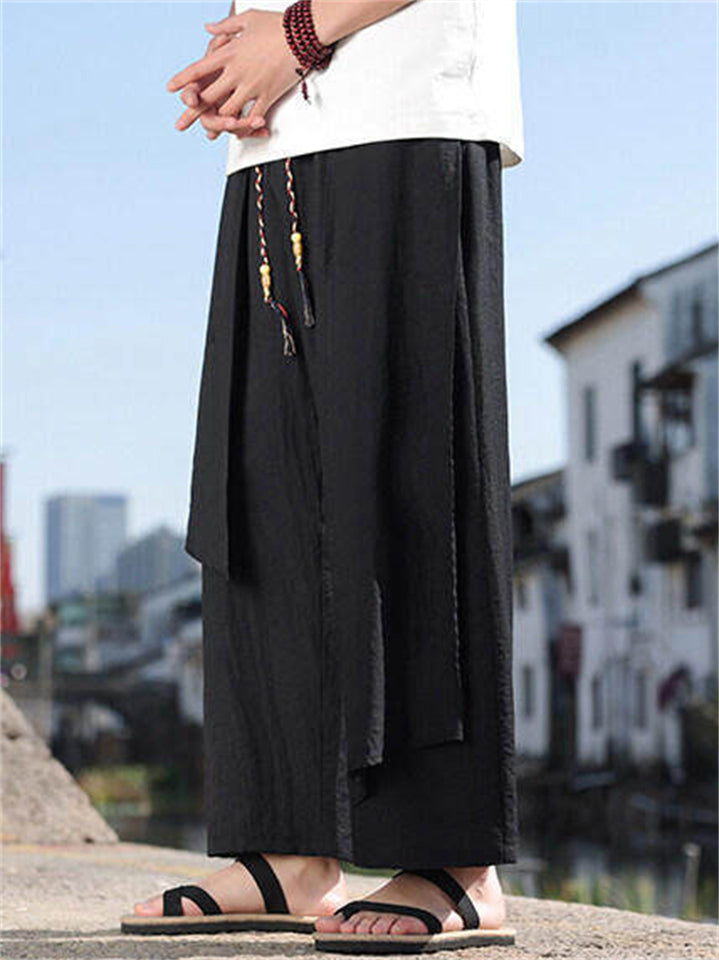 Men's Japanese Style Vintage Solid Color Texture Scimitar Pants