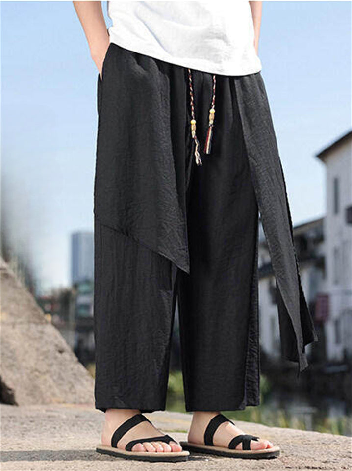 Vintage Japanese Street Style Drawstring Linen Pants for Men