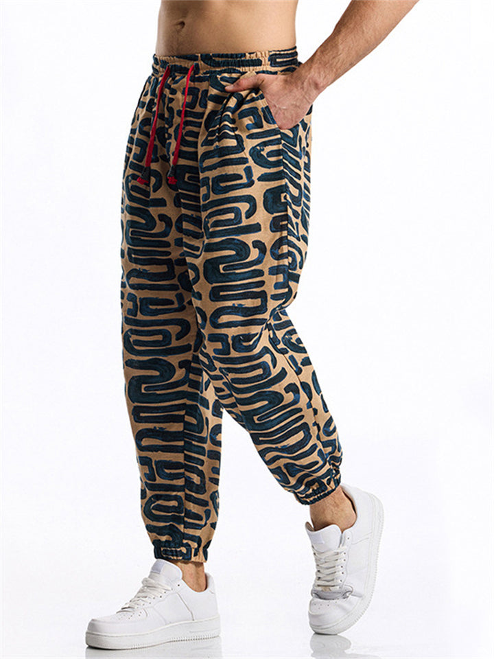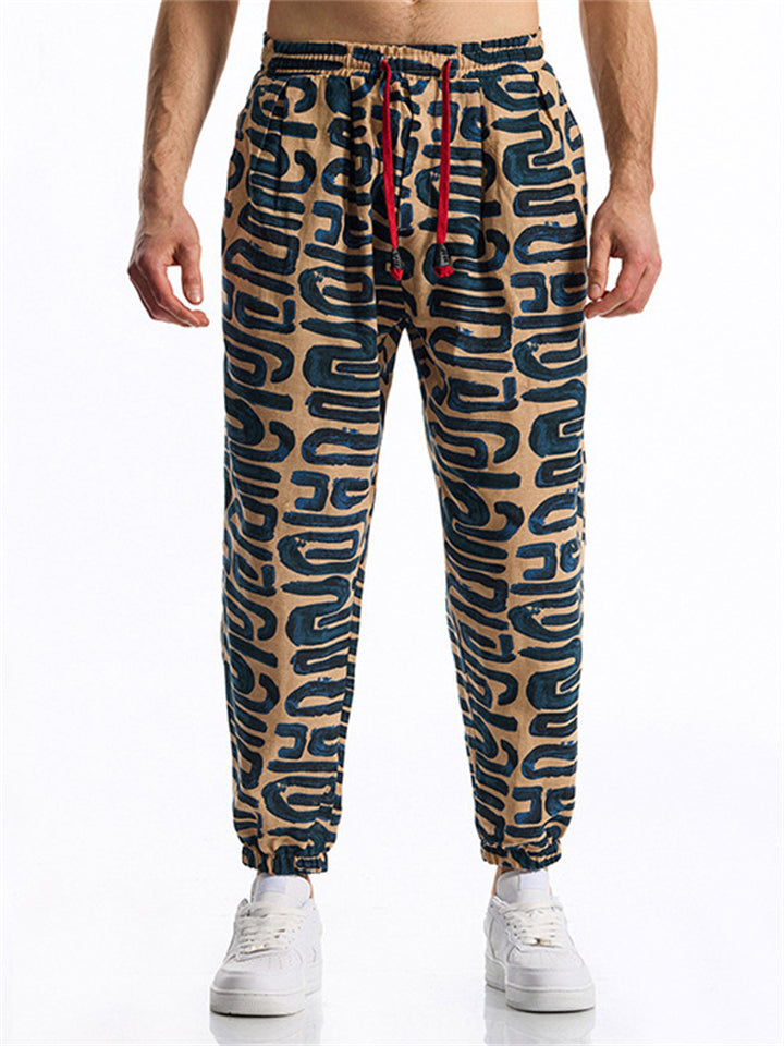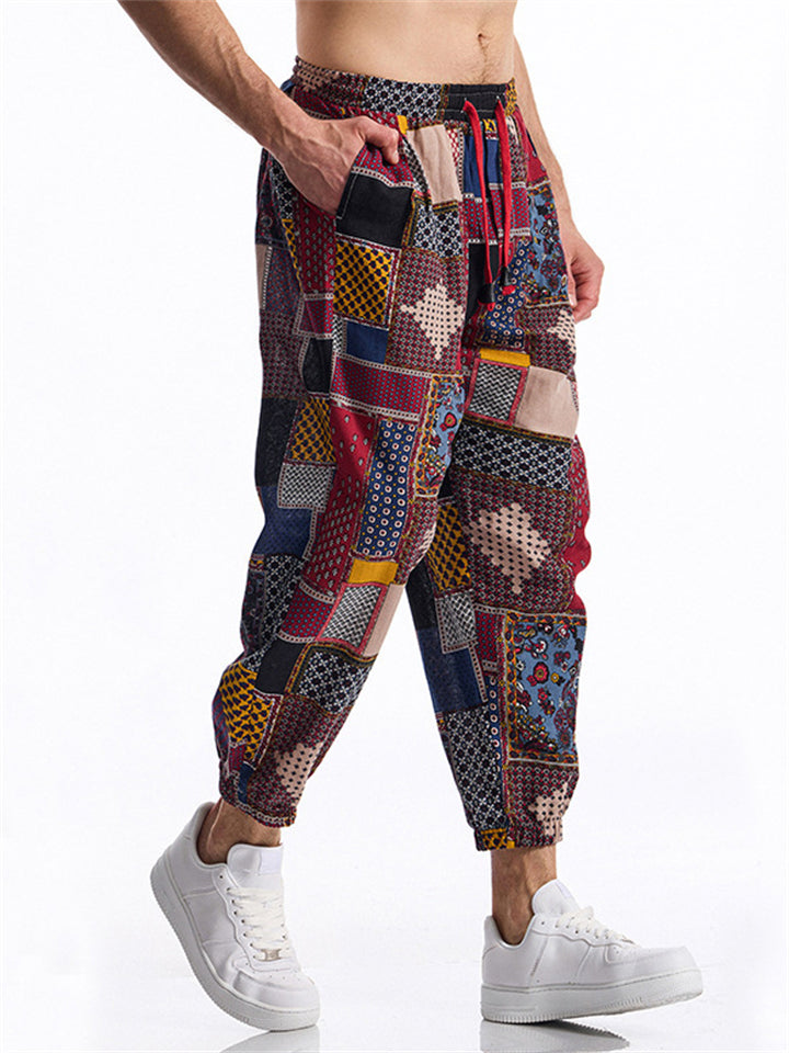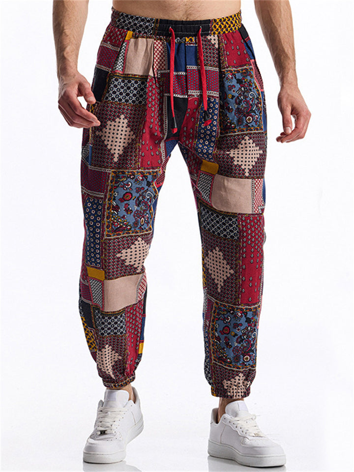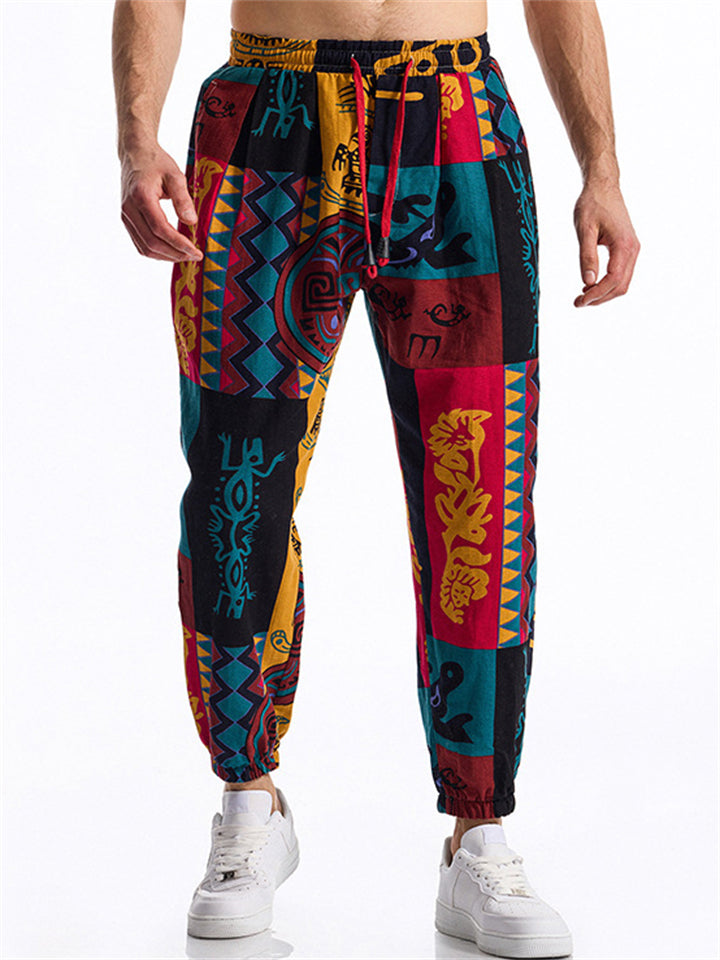 Men's Summer Retro Ethnic Style Print Drawstring Jogger Pants