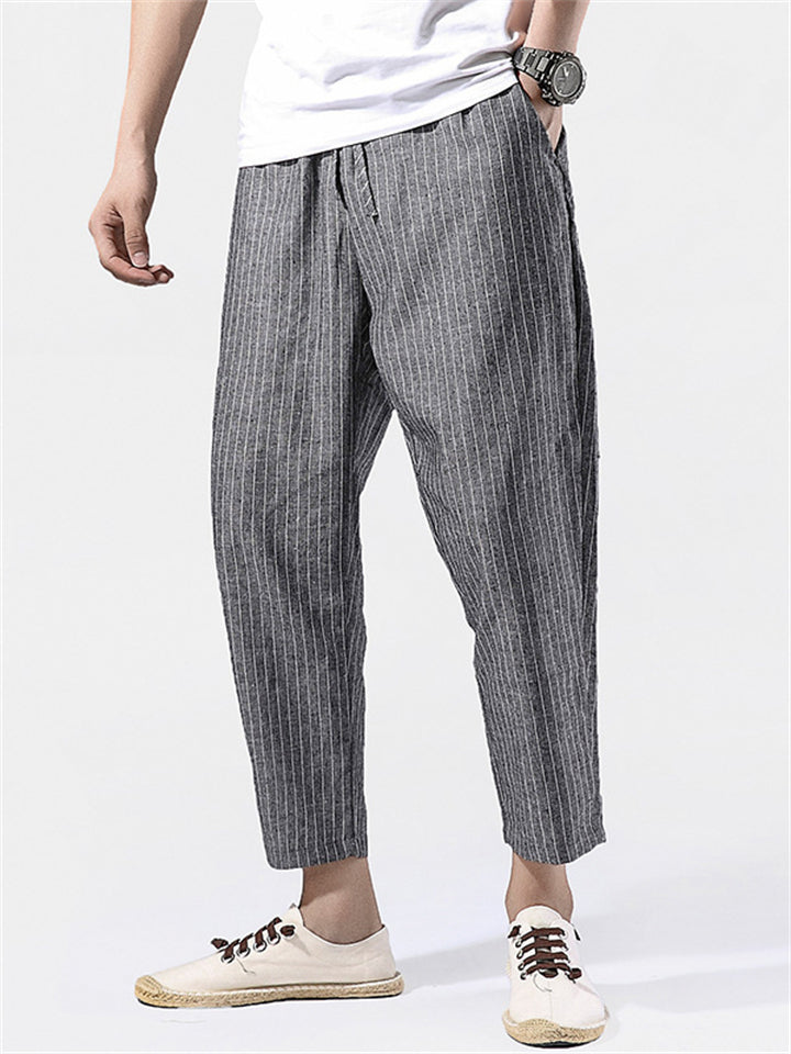 Men's Retro Summer Striped Drawstring Bloomers Jogger Pants